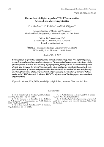 The method of digital signals of TDI FPA correction for small-size objects registration 267