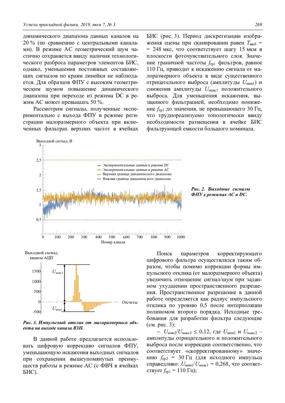 Метод цифровой коррекции сигналов многорядных фотоприемных устройств для регистрации малоразмерных объектов 267