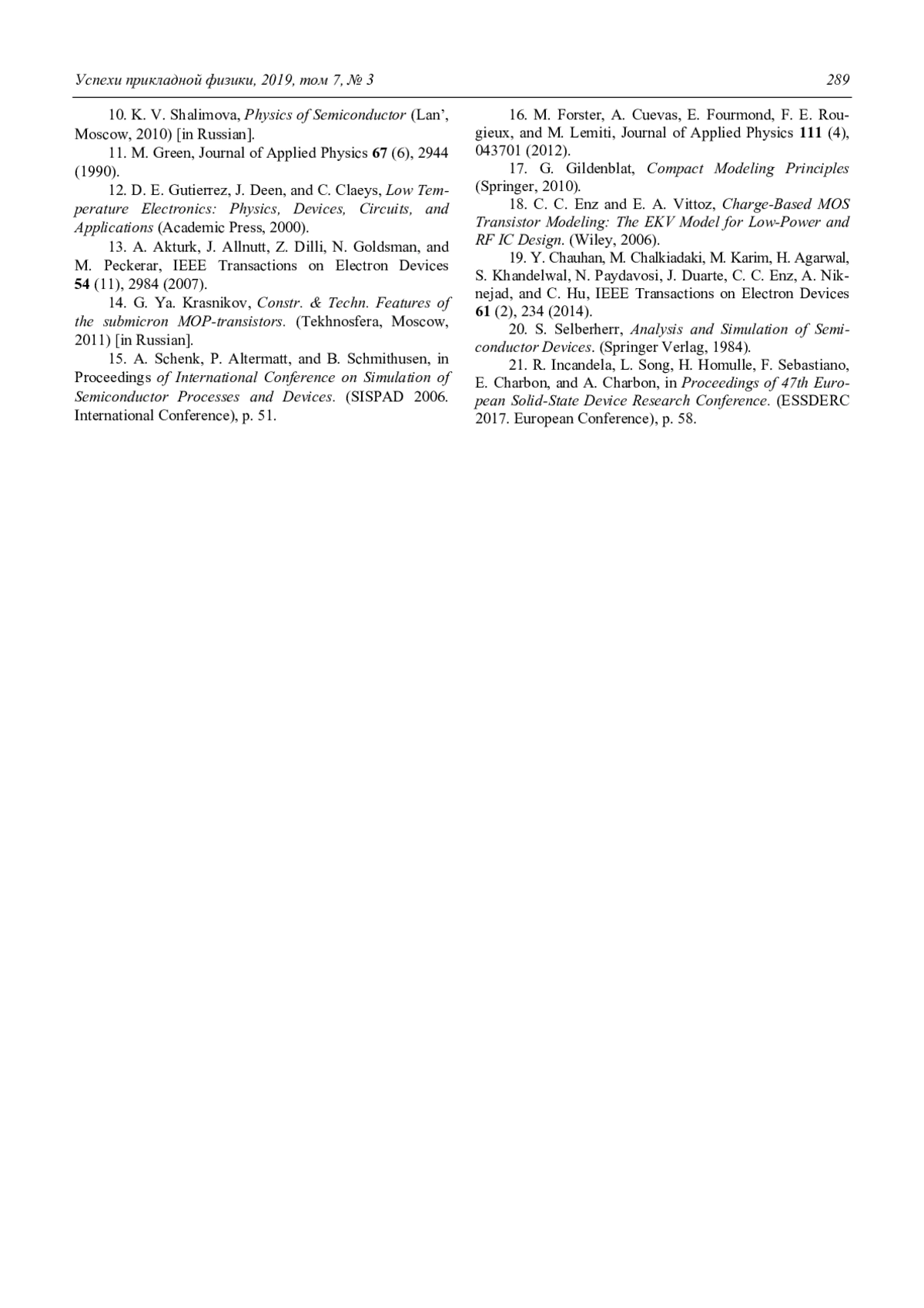 8. Wu W., Chen T., Gildenblat G., McAndrew C. C. // IEEE Transactions on Electron Devices. 2004. Vol. 51. No. 7. P. 1196.