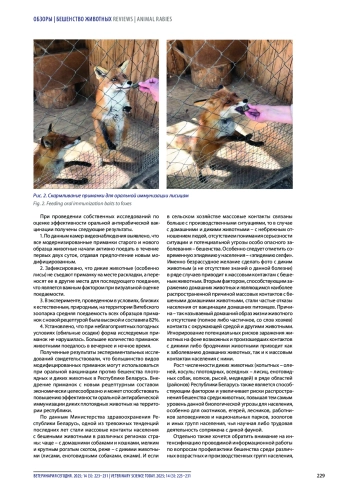 Заключение. В Республике Беларусь проблема бешенства остается актуальной, в первую очередь она касается дикой фауны. Основополагающими методами борьбы с заболеванием являются оральная антирабическая вакцинация диких животных и информационная работа с населением. Для стойкого уменьшения количества случаев бешенства в дикой и домашней фауне, а также для снижения рисков заболевания людей считаем необходимым дальнейшее расширение площадей оральной антирабической вакцинации, а также усиление контроля и интенсивности программы антирабической вакцинации домашних плотоядных животных.