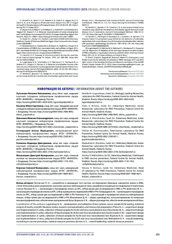 20. Луговская Н. Н., Калинина Е. Н., Малкова К. С., Воробьева О. В., Горячева Г. М., Майорова Т. К. Валидация методики определения уровня противоящурных антител в реакции жидкофазного блокирующего “сэндвич”-варианта иммуноферментного анализа. Ветеринария сегодня. 2015; (3): 22-29.