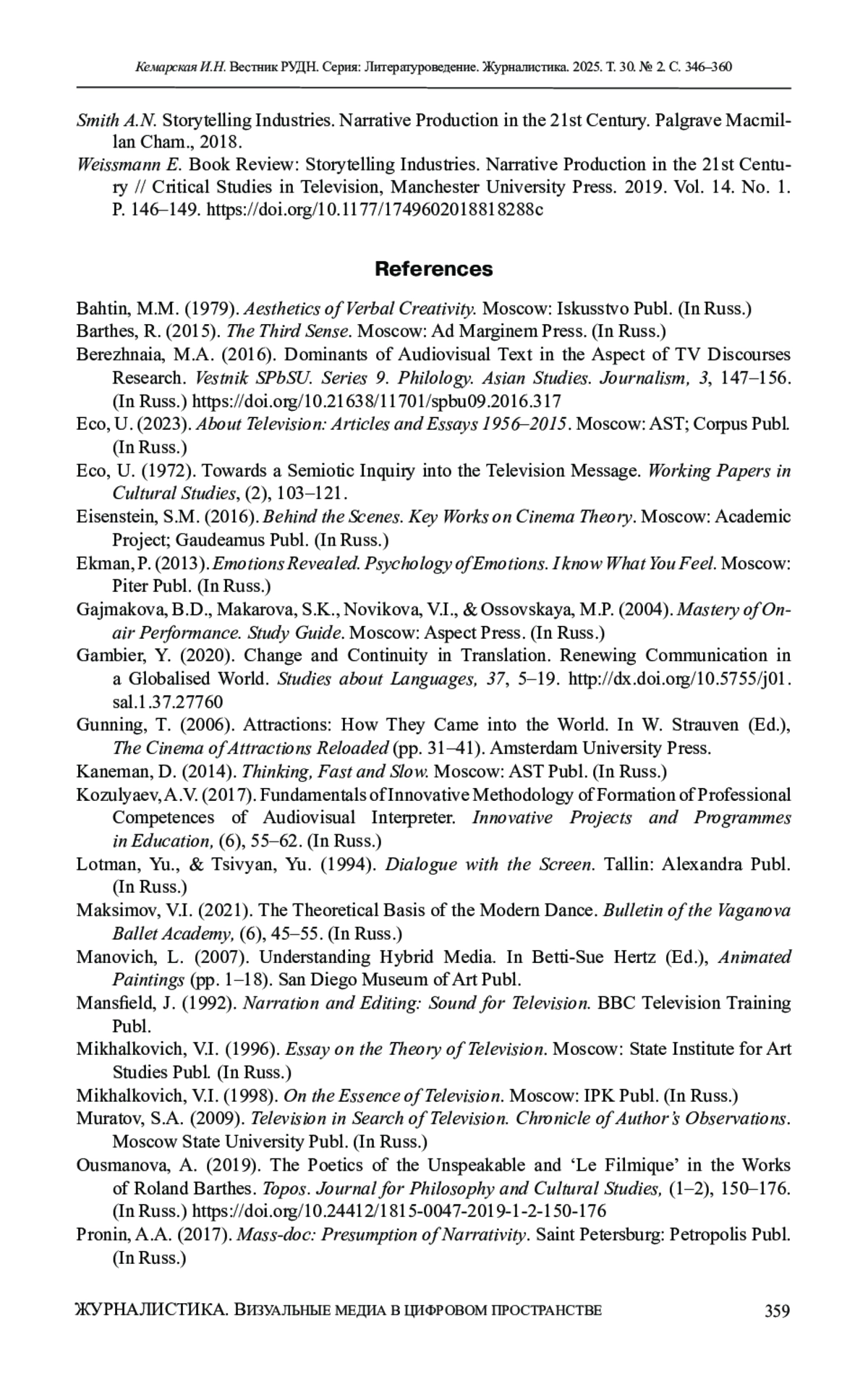 25. Smith A.N. Storytelling Industries. Narrative Production in the 21st Century. Palgrave Macmillan Cham., 2018.