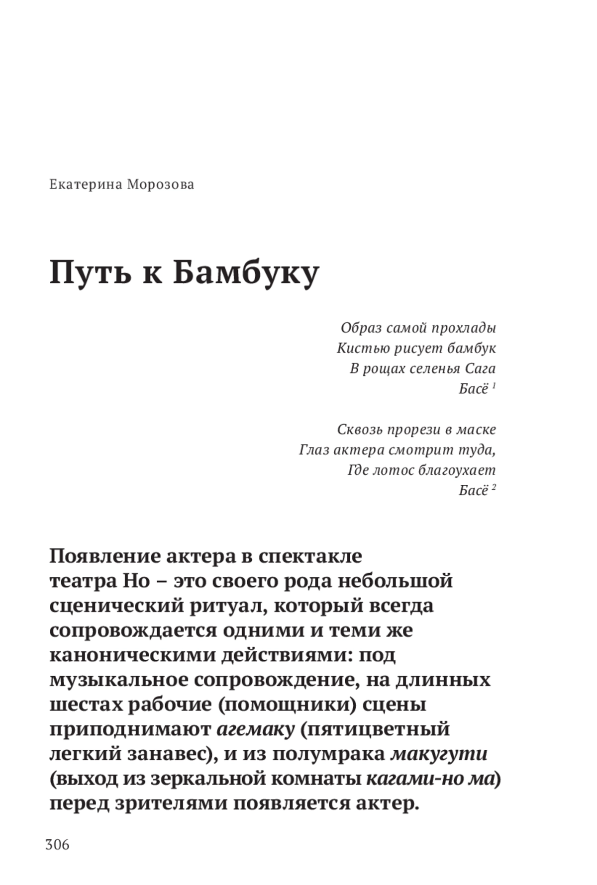 МОРОЗОВА Е. Б. ПУТЬ К БАМБУКУ // ВОПРОСЫ ТЕАТРА. 2024. № 3-4