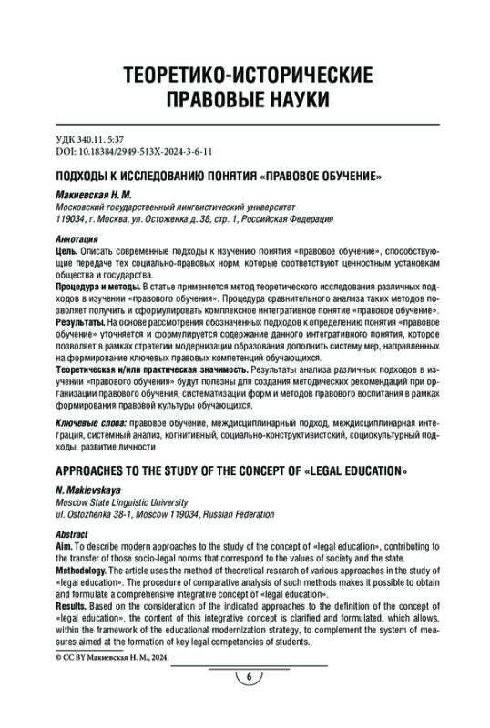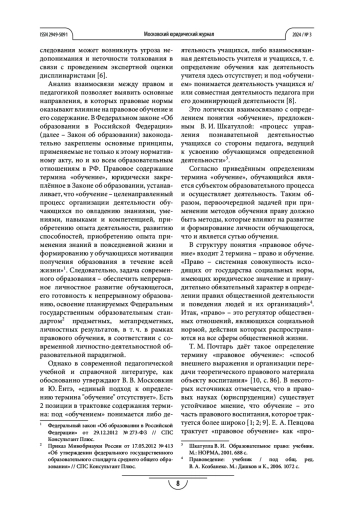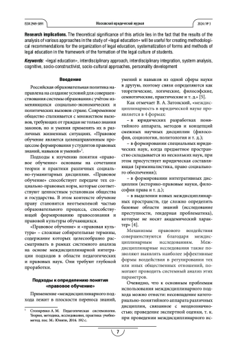Цель. Описать современные подходы к изучению понятия «правовое обучение», способствующие передаче тех социально-правовых норм, которые соответствуют ценностным установкам общества и государства.