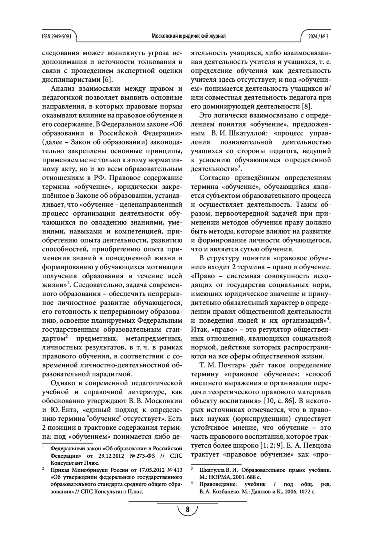 Процедура и методы. В статье применяется метод теоретического исследования различных подходов в изучении «правового обучения». Процедура сравнительного анализа таких методов позволяет получить и сформулировать комплексное интегративное понятие «правовое обучение».