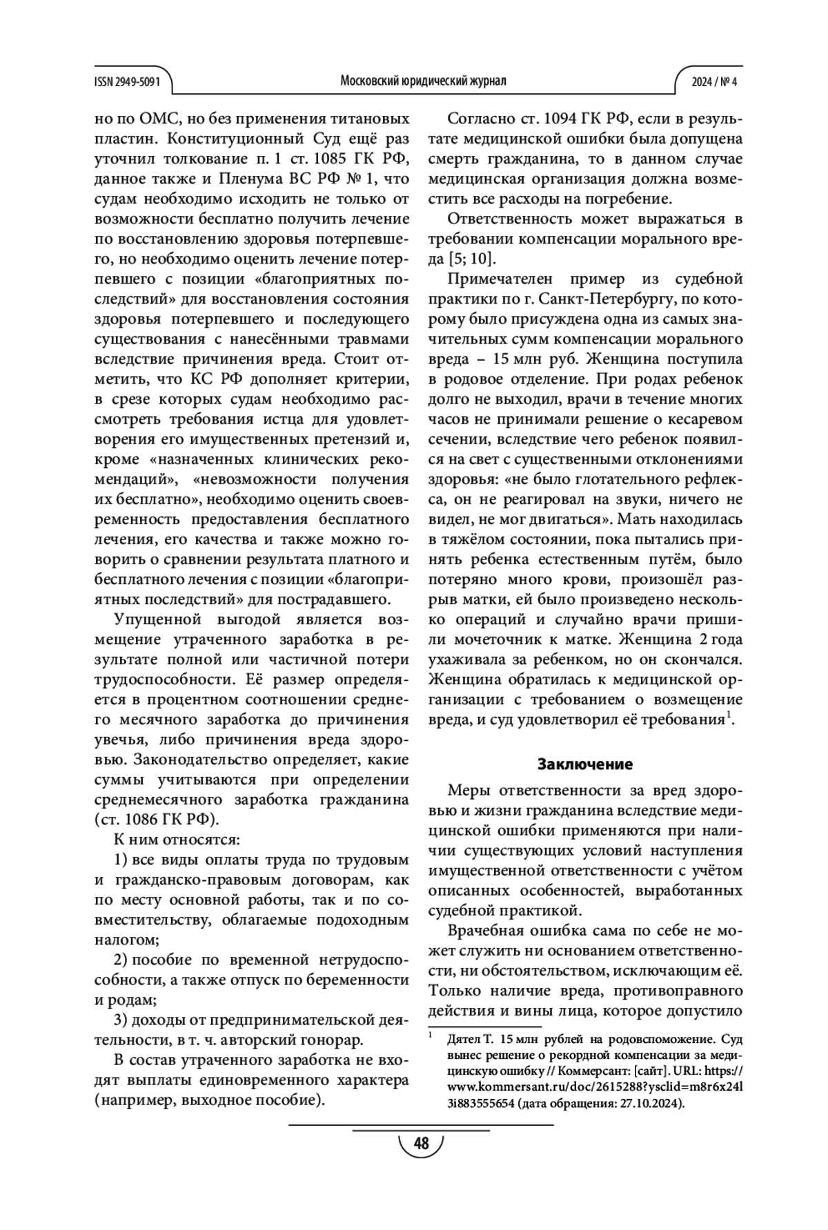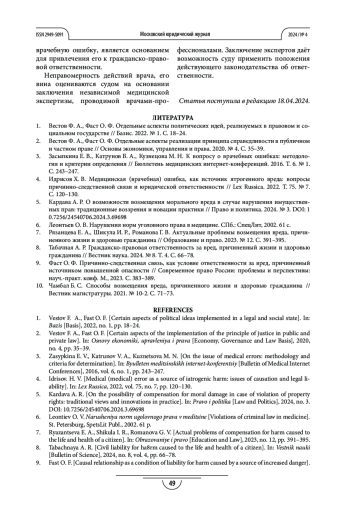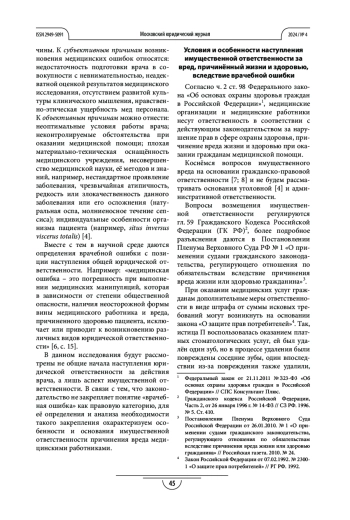Результаты. Анализ особенностей наступления ответственности и обобщение судебной практики направлено на единообразное понимание правовых категорий, которые позволили бы суду не только возлагать ответственность на медицинских работников, но и давали бы ориентиры для освобождения их от имущественной ответственности и реализовывали принцип справедливого рассмотрения такой категории дела.