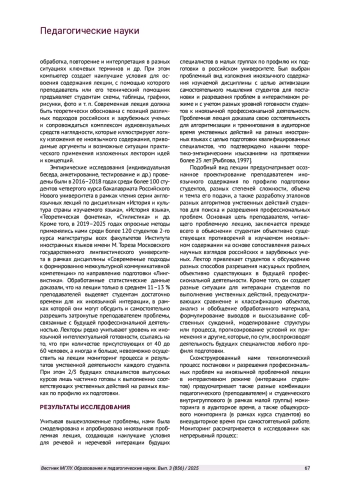 Статья: ИНТЕРАКТИВНАЯ ОРГАНИЗАЦИЯ ИНОЯЗЫЧНОЙ ПРОБЛЕМНОЙ ЛЕКЦИИ: МОНИТОРИНГ РАЗНОУРОВНЕВЫХ УМСТВЕННЫХ ДЕЙСТВИЙ СТУДЕНТОВ В МАЛЫХ ГРУППАХ (2025)
