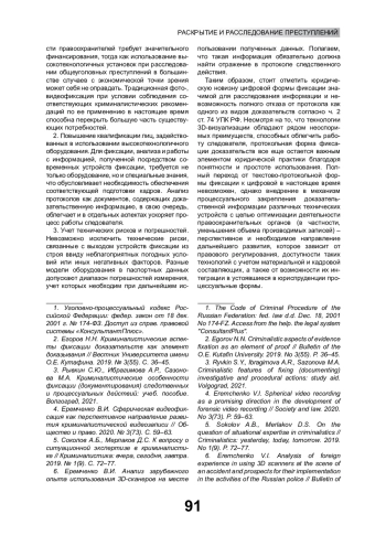 6. Еремченко В.И. Анализ зарубежного опыта использования 3D-сканеров на месте происшествия и перспективы их внедрения в деятельность полиции России // Вестник Краснодарского университета МВД России. 2021. № 1(51). С. 49-52. EDN: PWIWNO