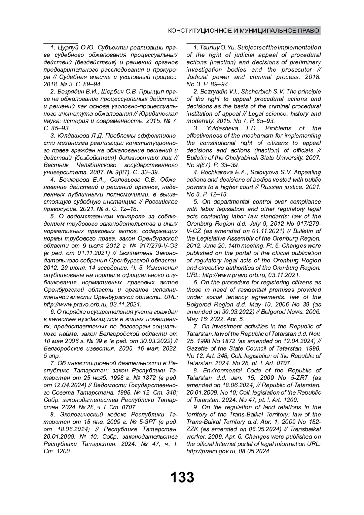 3. Юлдашева Л.Д. Проблемы эффективности механизма реализации конституционного права граждан на обжалование решений и действий (бездействия) должностных лиц // Вестник Челябинского государственного университета. 2007. № 9(87). С. 33-39.