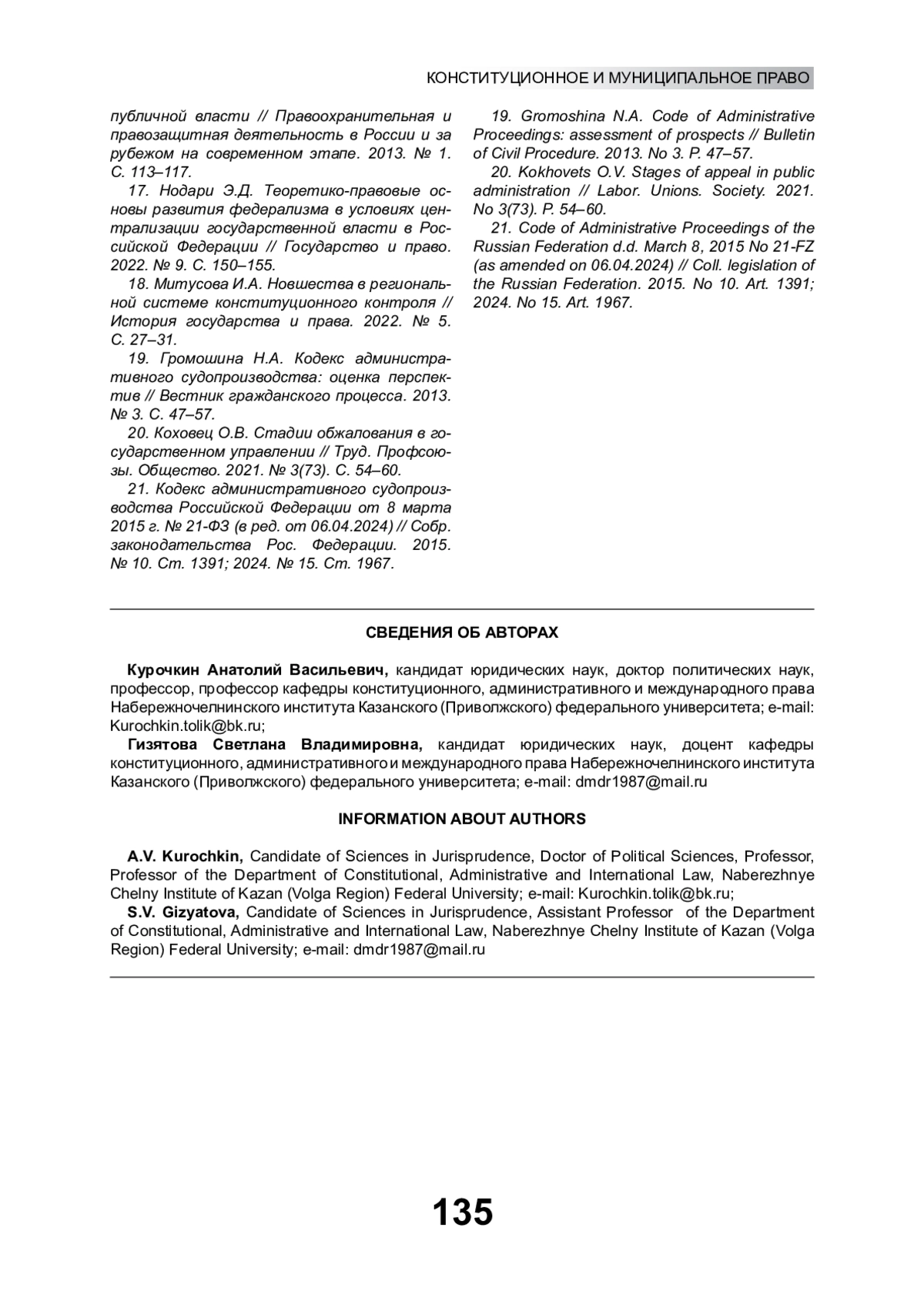 19. Громошина Н.А. Кодекс административного судопроизводства: оценка перспектив // Вестник гражданского процесса. 2013. № 3. С. 47-57. EDN: QJHZLB
