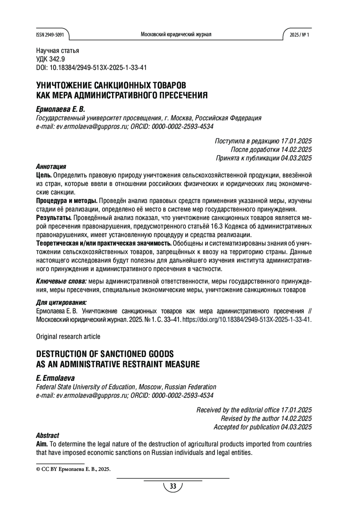 - 10.18384/2949-513X-2025-1-33-41