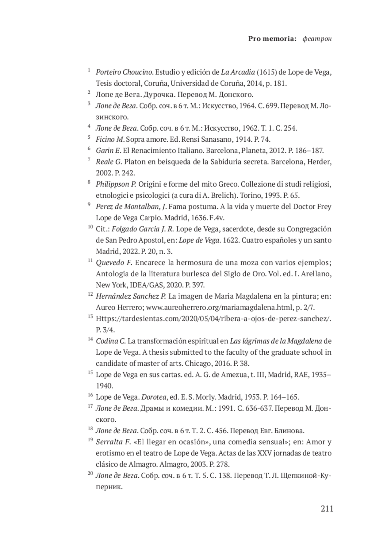 14. Codina C. La transformación espiritual en Las lágrimas de la Magdalena de Lope de Vega. A thesis submitted to the faculty of the graduate school in candidate of master of arts. Chicago, 2016. P. 38.