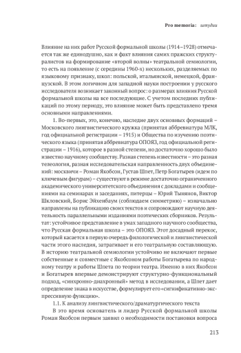 Влияние на них работ Русской формальной школы (1914–1928) отмечается так же единодушно, как и факт влияния самих пражских структуралистов на формирование «второй волны» театральной семиологии, то есть на появление (с середины 1960-х) нескольких, разделяемых по языковому признаку, школ: польской, итальянской, немецкой, французской. В этом логичном для западной науки построении у русского исследователя возникает законный вопрос: о размерах влияния Русской формальной школы на все последующие. С учетом последних публикаций по этому периоду, это влияние может быть представлено тремя основными направлениями.