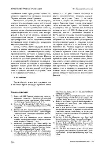 10. Kochenov D. 2005. EU Enlargement Law: History and Recent Developments: Treaty - Custom Concubinage? - European Integration online Papers. Vol. 9. Issue 6. P. 1-23.