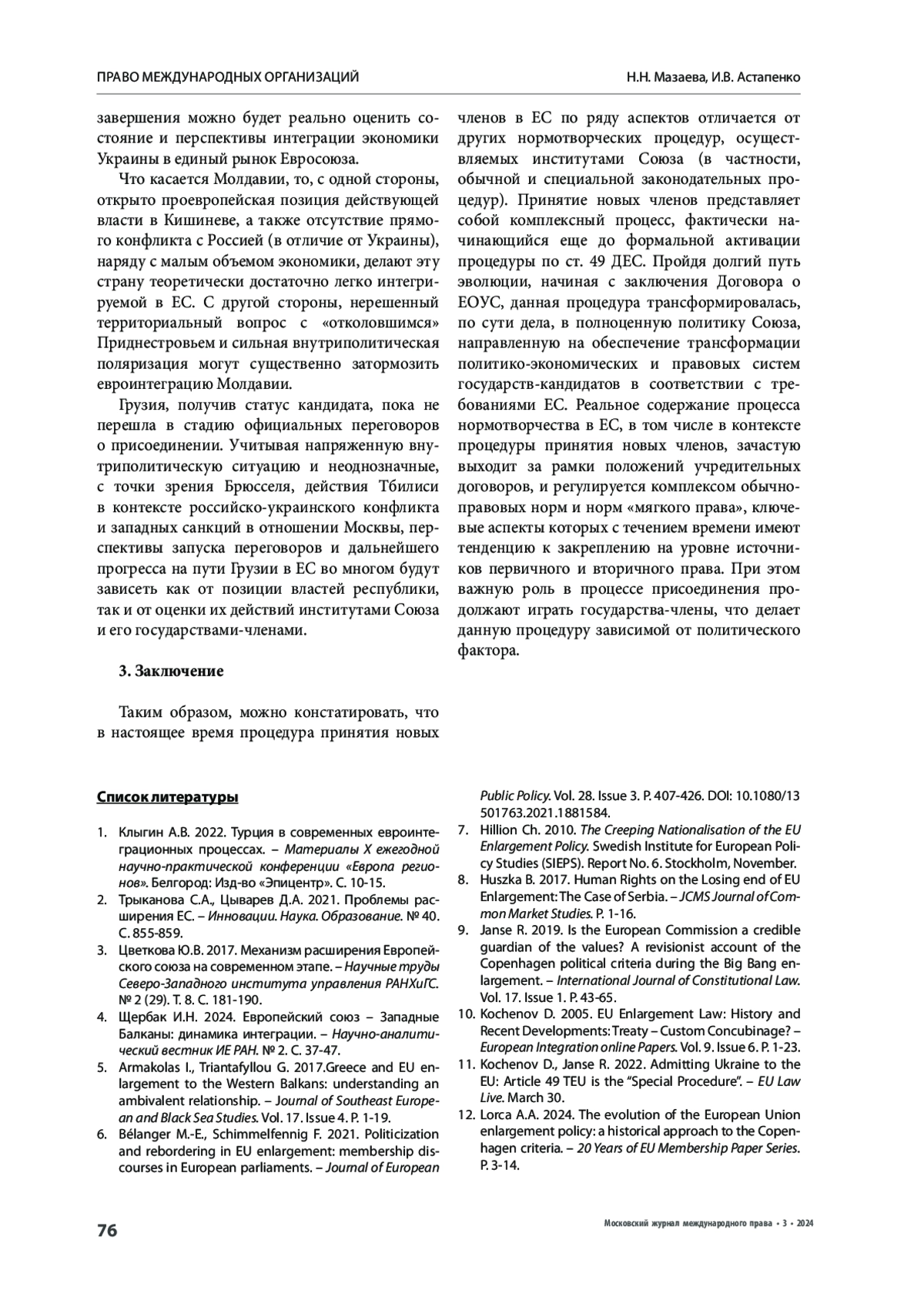 12. Lorca A.A. 2024. The evolution of the European Union enlargement policy: a historical approach to the Copenhagen criteria. - 20 Years of EU Membership Paper Series. P. 3-14.