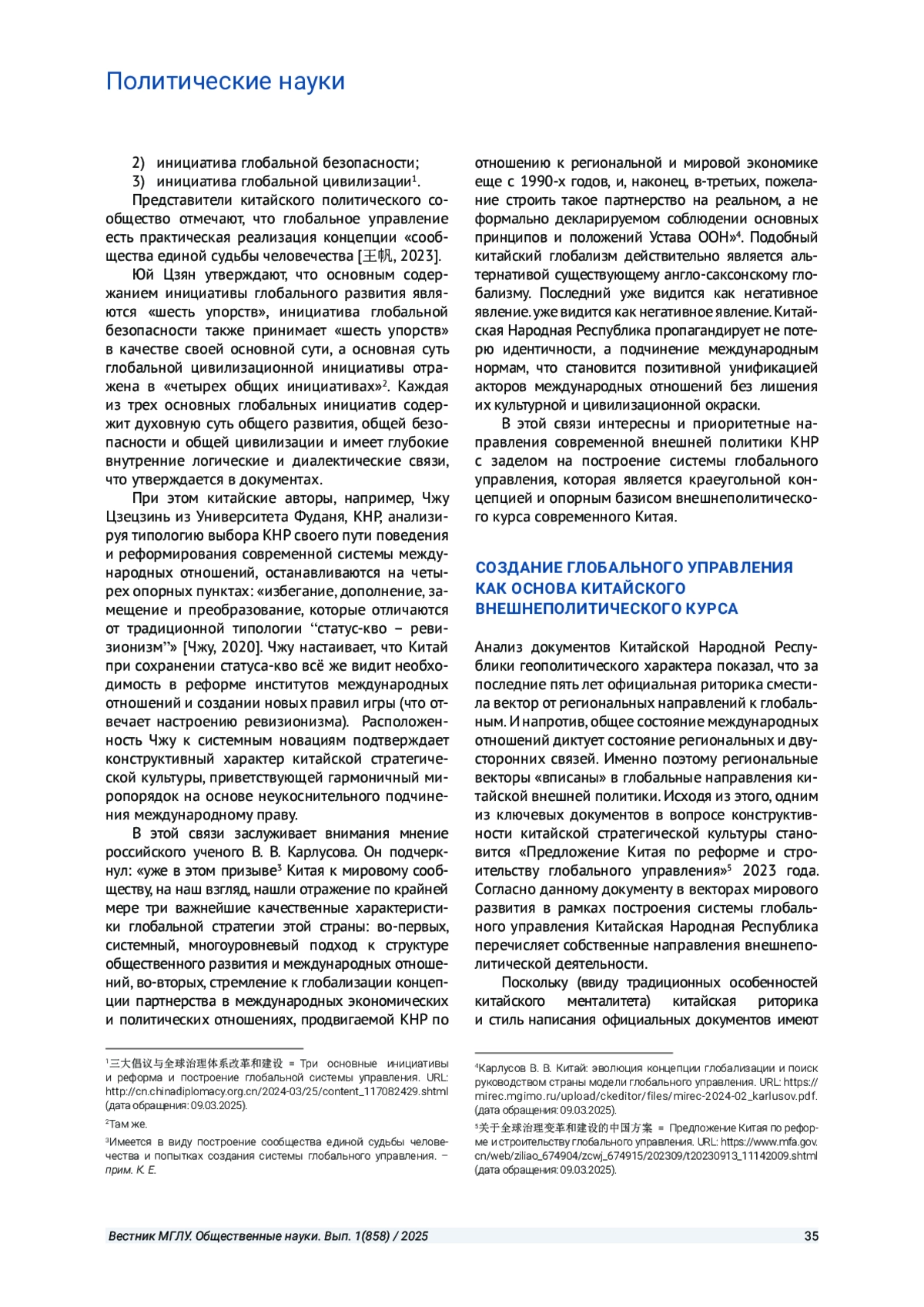 2. Чжу Ц. Как Китай выбирает путь реформы глобального управления? Вестник международных организаций: образование, наука, новая экономика. 2020. № 3. С. 248-281. EDN: DBVLWH