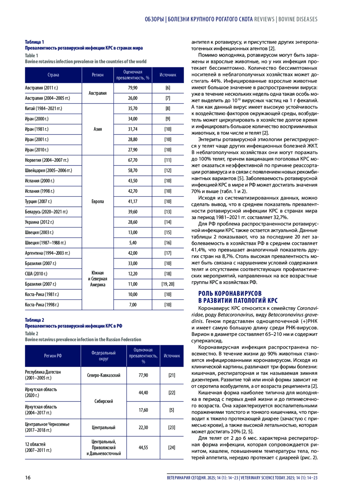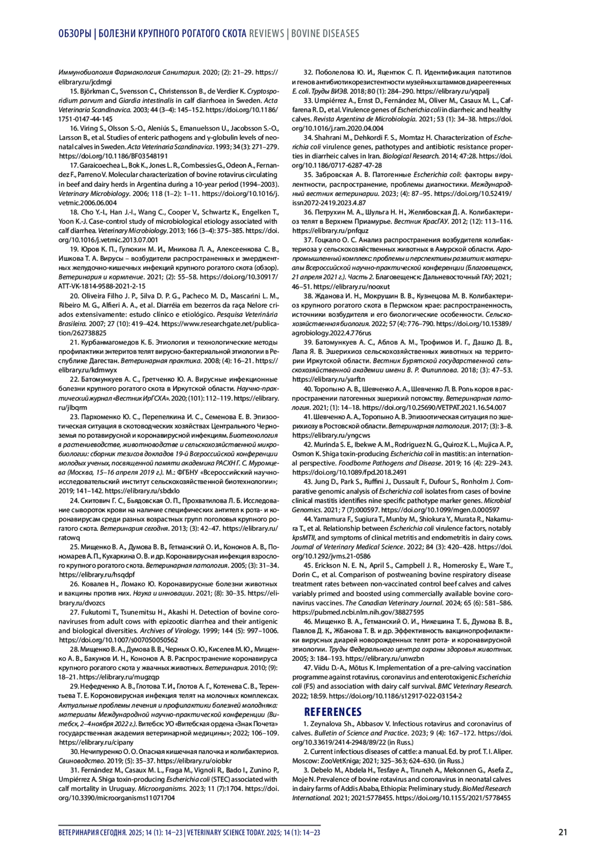 КРУГЛОВ И. А., КОНОНОВ А. В., НЕСТЕРОВ А. А., КОНОНОВА С. В., ПРУНТОВА О. В. ЗНАЧЕНИЕ РОТАВИРУСА, КОРОНАВИРУСА И ESCHERICHIA COLI В ЭТИОЛОГИИ БОЛЕЗНЕЙ МОЛОДНЯКА КРУПНОГО РОГАТОГО СКОТА (ОБЗОР) // ВЕТЕРИНАРИЯ СЕГОДНЯ. 2025. № 1, ТОМ 14