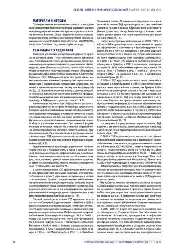 Результаты. После выхода вируса заразного узелкового дерматита крупного рогатого скота за границы Африканского континента в 1988 г. он ненадолго задержался в пределах стран Ближнего Востока, уже через два года проникнув далее на запад и восток. Несмотря на дальнейшее распространение, в ближневосточных странах еще в течение нескольких последующих лет отмечались повторные вспышки заболевания. Многие страны Ближнего Востока все еще сталкиваются с проблемой бесконтрольного перемещения скота, отсутствием возможностей для проведения качественной лабораторной диагностики, нерегулярностью контактов с международными организациями в сфере здравоохранения и надзора, усугубляемыми нестабильностью политической ситуации в регионе. Данные проблемы подчеркивают важность борьбы с заразным узелковым дерматитом крупного рогатого скота на международном уровне, значение регионального и международного сотрудничества и проведения эффективной политики биобезопасности.