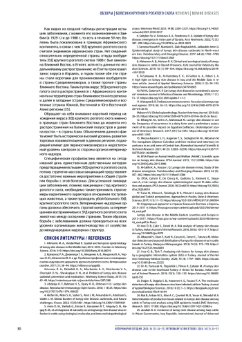 2. Кривонос Р. А., Джаилиди Г. А., Мищенко А. В., Мищенко В. А., Черных О. Ю., Шевкопляс В. Н. и др. Проблема профилактики и ликвидации очагов нодулярного дерматита крупного рогатого скота. Ветеринария сегодня. 2017; (1): 38-44.