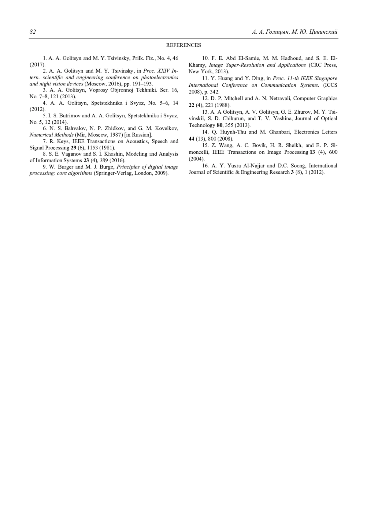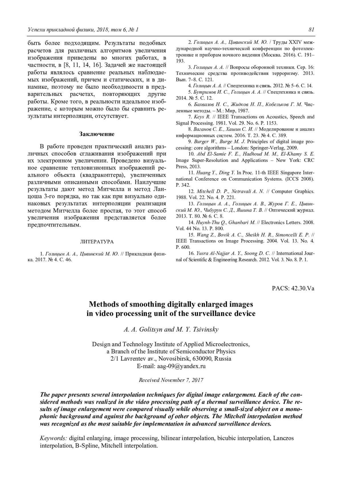 A. A. Golitsyn and M. Y. Tsivinsky Methods of smoothing digitally enlarged images in video processing unit of the surveillance device 75