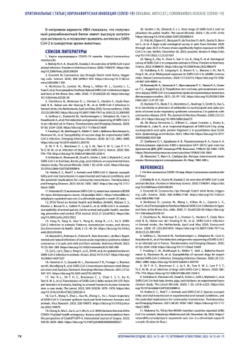 13. Fang R., Yang X., Guo Y., Peng B., Dong R., Li S., Xu S. SARS-CoV-2 infection in animals: Patterns, transmission routes, and drivers. Eco-Environment & Health. 2024; 3 (1): 45-54. DOI: 10.1016/j.eehl.2023.09.004