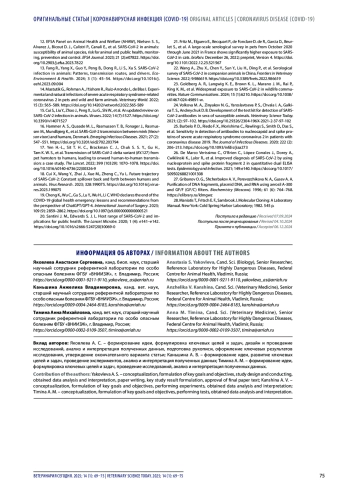 10. Hobbs E. С., Reid T. J. Animals and SARS-CoV-2: Species susceptibility and viral transmission in experimental and natural conditions, and the potential implications for community transmission. Transboundary and Emerging Diseases. 2021; 68 (4): 1850-1867. DOI: 10.1111/tbed.13885