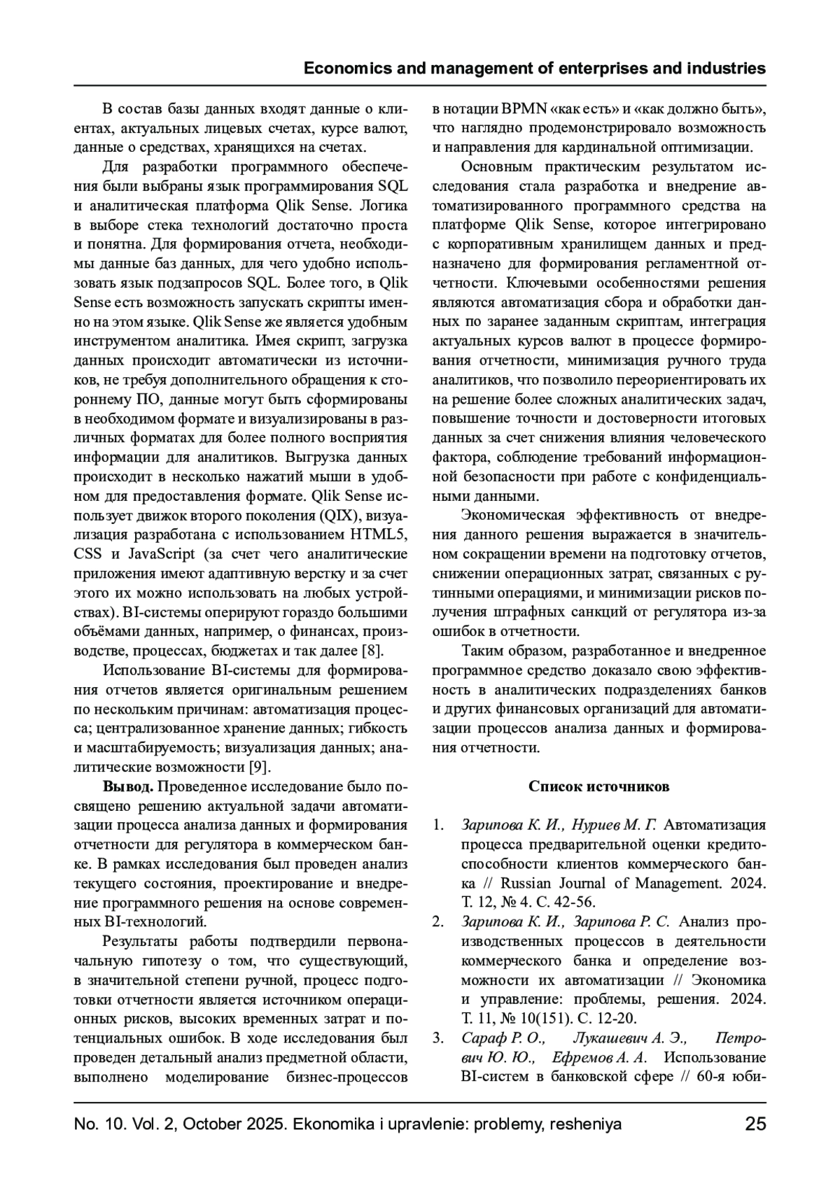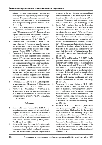 2. Зарипова К. И., Зарипова Р. С. Анализ производственных процессов в деятельности коммерческого банка и определение возможности их автоматизации // Экономика и управление: проблемы, решения. 2024. Т. 11, № 10(151). С. 12-20. EDN: QFSZLE