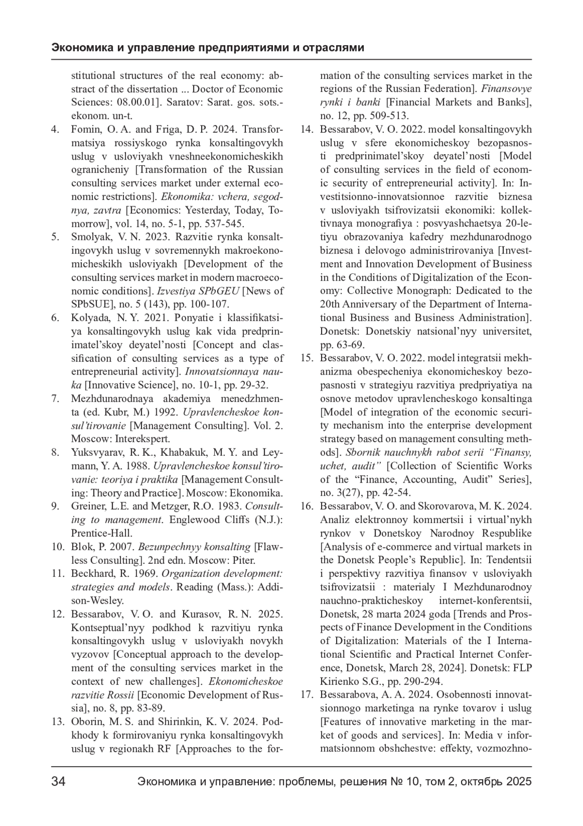 12. Бессарабов В. О., Курасов Р. Н. Концептуальный подход к развитию рынка консалтинговых услуг в условиях новых вызовов // Экономическое развитие России. - 2025. - № 8. - С. 83-89. EDN: EJFCWJ