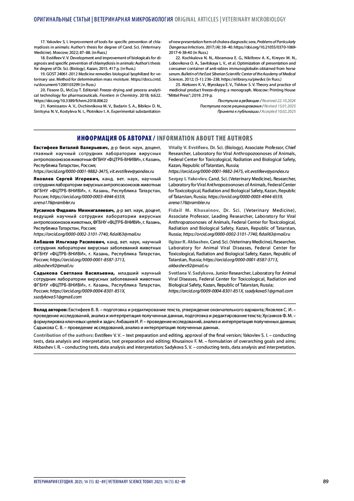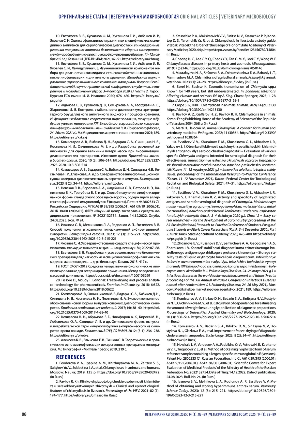 17. Яковлев С. И. Усовершенствование средств специфической профилактики хламидиоза животных: дис.. канд. вет. наук. М.; 2022; 87-88.