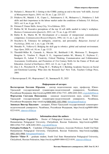 25. Polakova M., Madzik J. H., Copus L., Suleimanova J. H., Molnarova I., Polednova J. Soft skills and their importance in the labour market under the conditions of Industry 5.0 // Heliyon. 2023. Vol. 9, no. 8. Pp. 18-70.