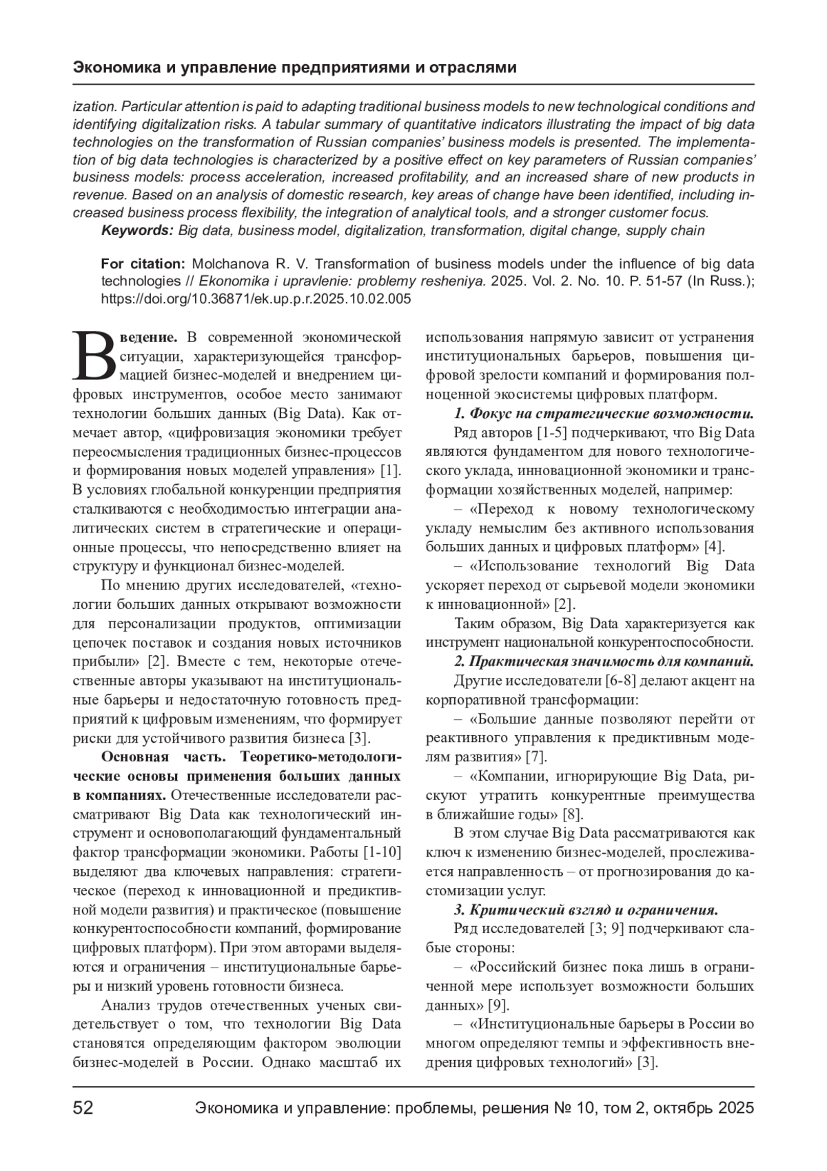 8. Лукьянов А. В. Цифровизация и большие данные: трансформация бизнес-моделей компаний // Менеджмент в России и за рубежом. 2021. № 2. С. 22-33.