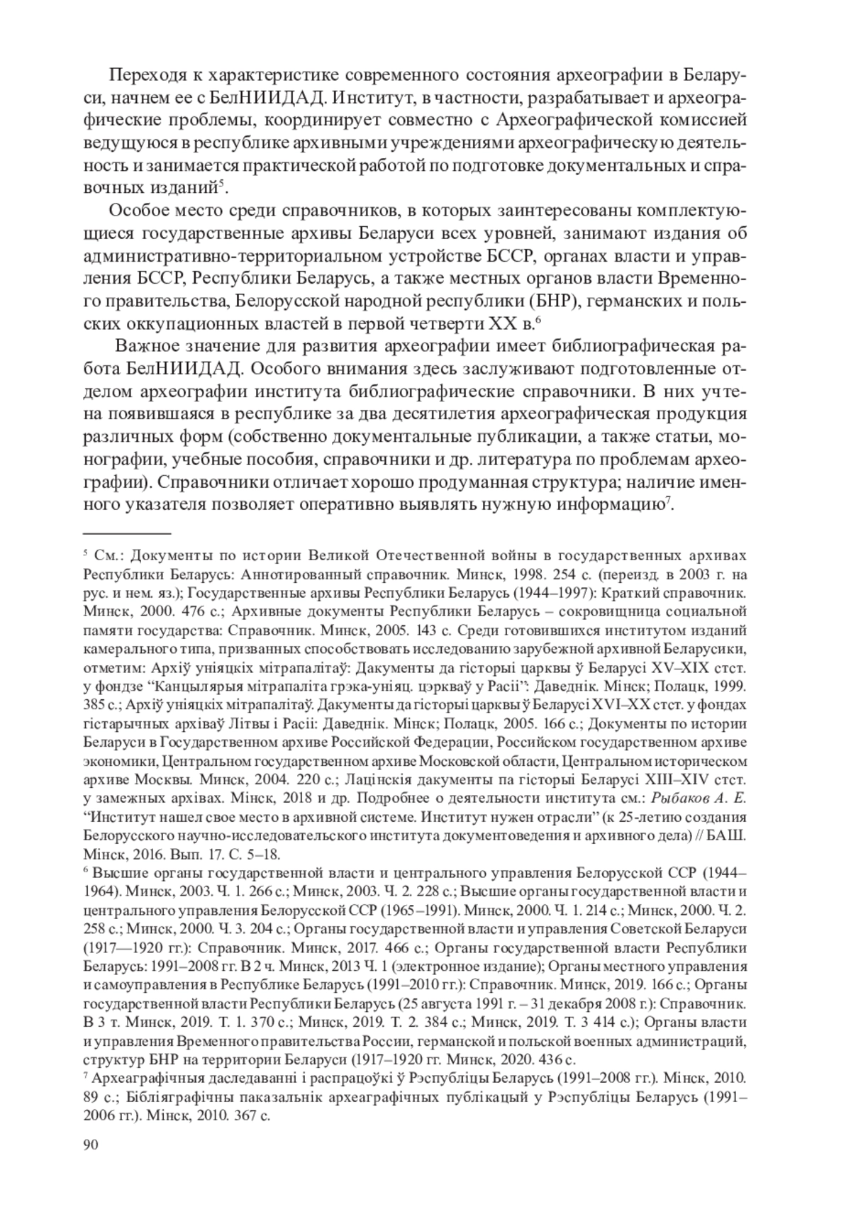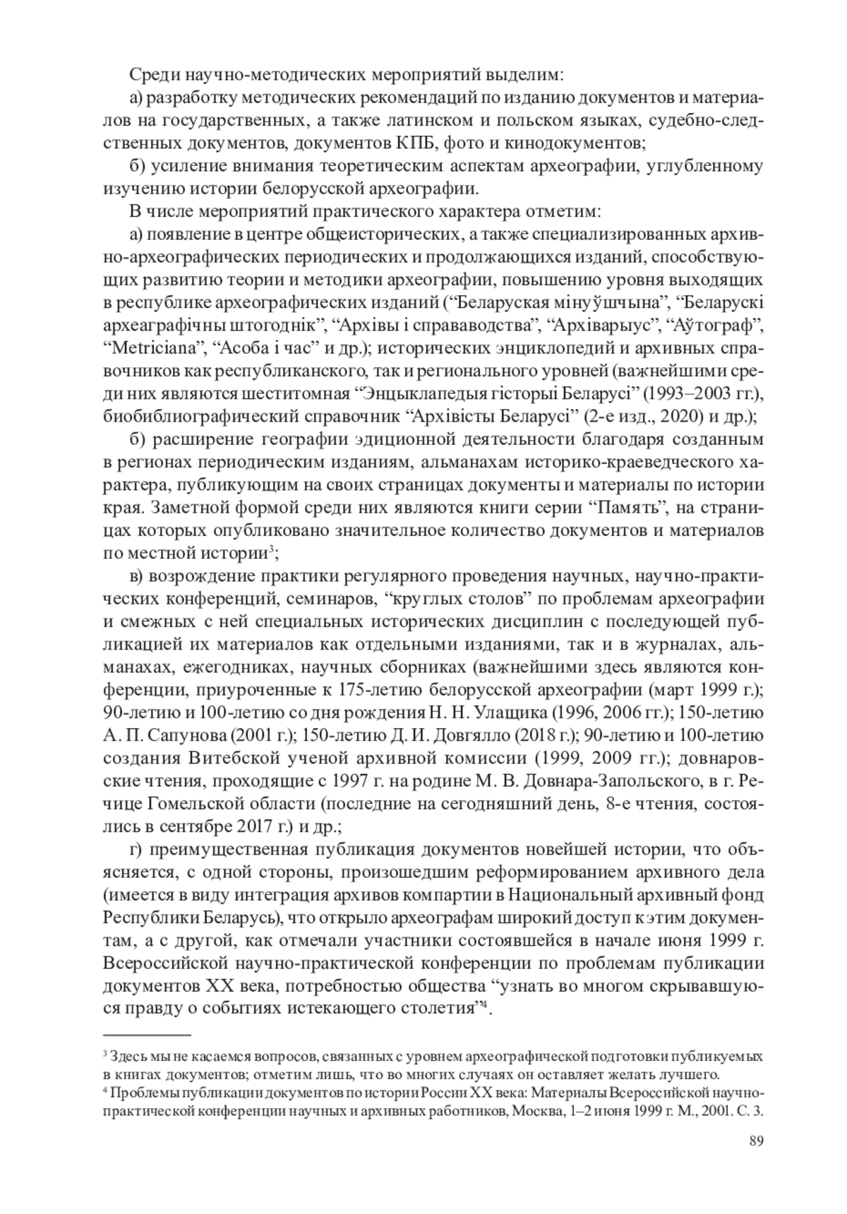 а) создание в декабре 1991 г. отраслевого научно-исследовательского центра (ныне – Белорусского НИИ документоведения и архивного дела), призванного в числе прочего осуществлять научно-методические разработки в области археографии, координировать в рамках своей ведомственной прерогативы практическую деятельность по выявлению, описанию и публикации в республике документов и материалов, а также самому принимать участие в камеральной и эдиционной работе путем подготовки и издания отдельных сборников документов и археографического ежегодника;