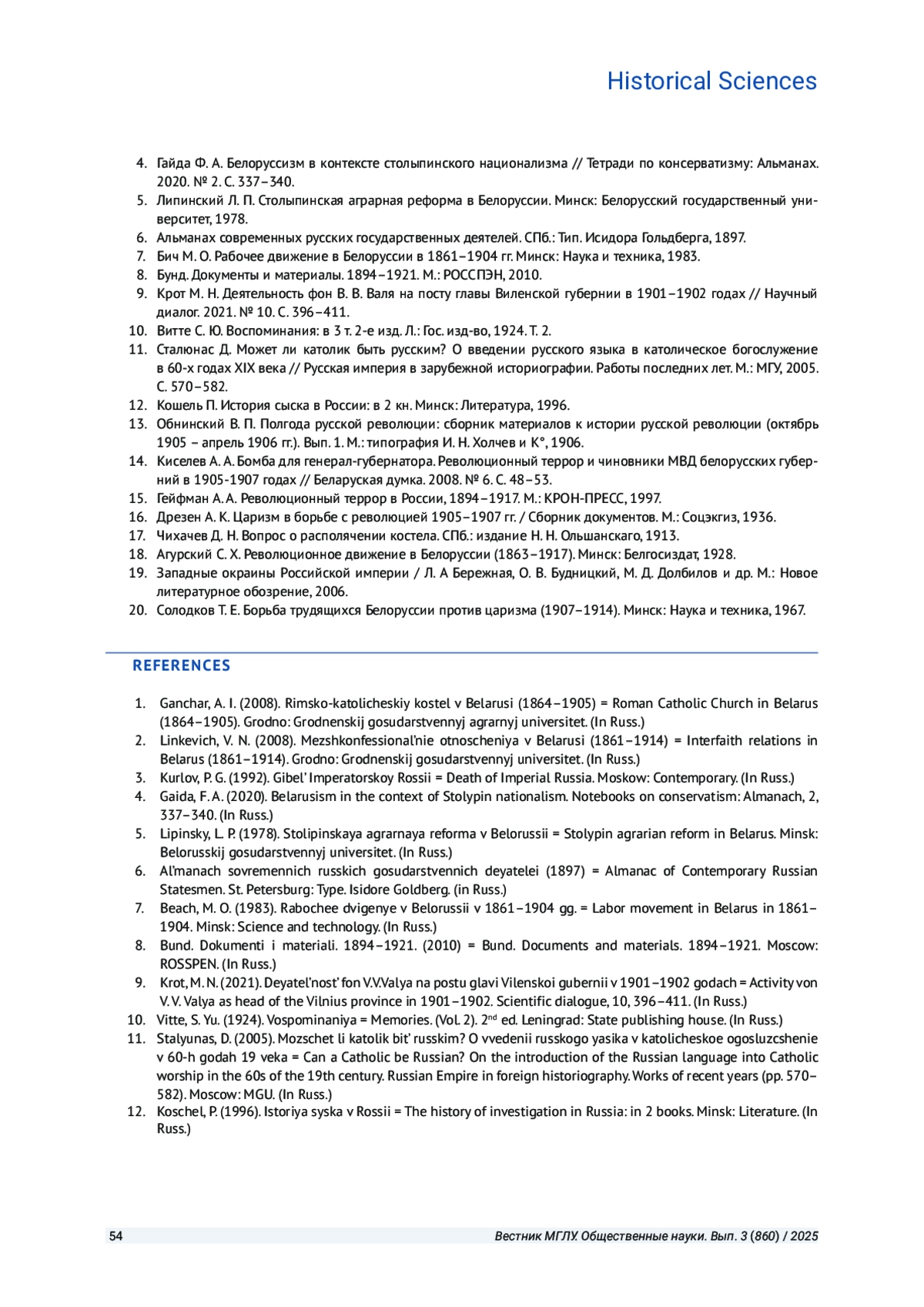 4. Гайда Ф. А. Белоруссизм в контексте столыпинского национализма // Тетради по консерватизму: Альманах. 2020. № 2. С. 337-340.
