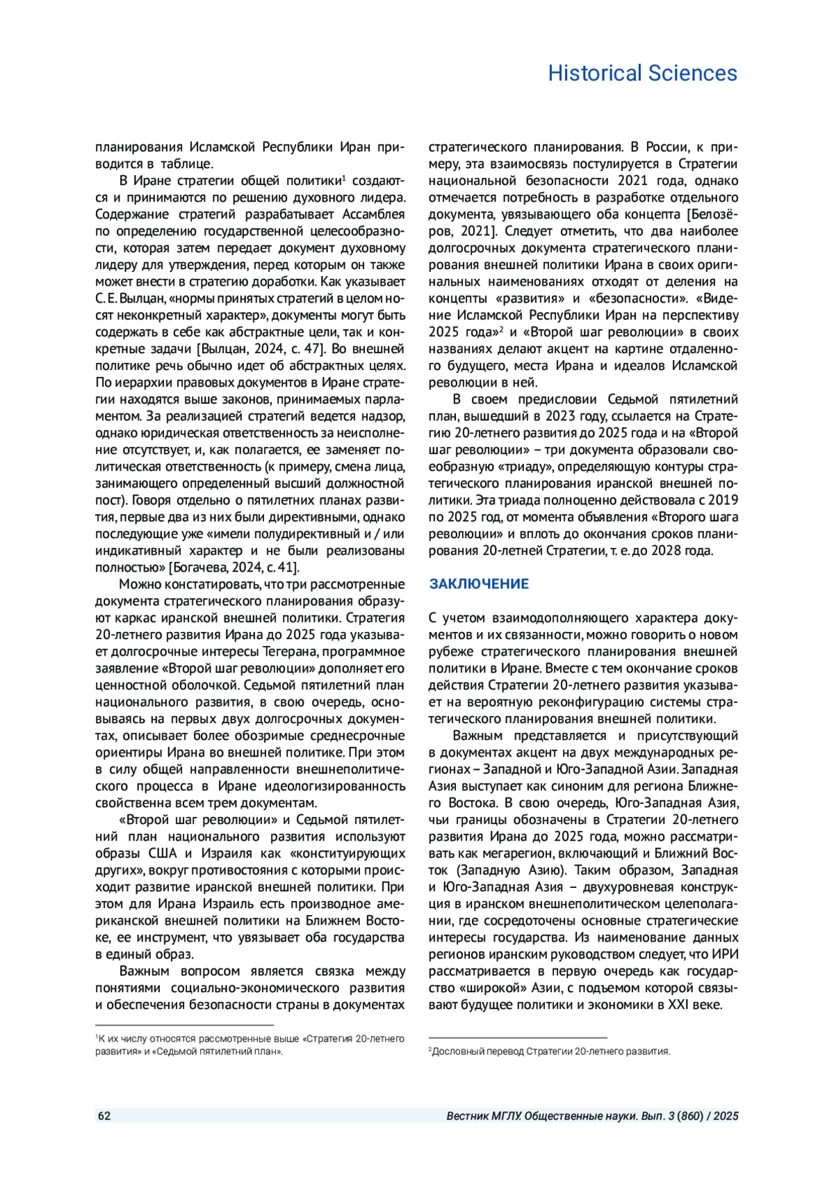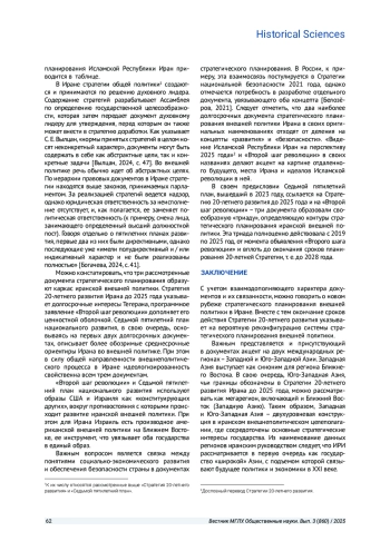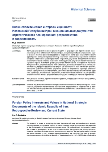 Статья: ВНЕШНЕПОЛИТИЧЕСКИЕ ИНТЕРЕСЫ И ЦЕННОСТИ ИСЛАМСКОЙ РЕСПУБЛИКИ ИРАН В НАЦИОНАЛЬНЫХ ДОКУМЕНТАХ СТРАТЕГИЧЕСКОГО ПЛАНИРОВАНИЯ: РЕТРОСПЕКТИВА И СОВРЕМЕННОСТЬ (2025)