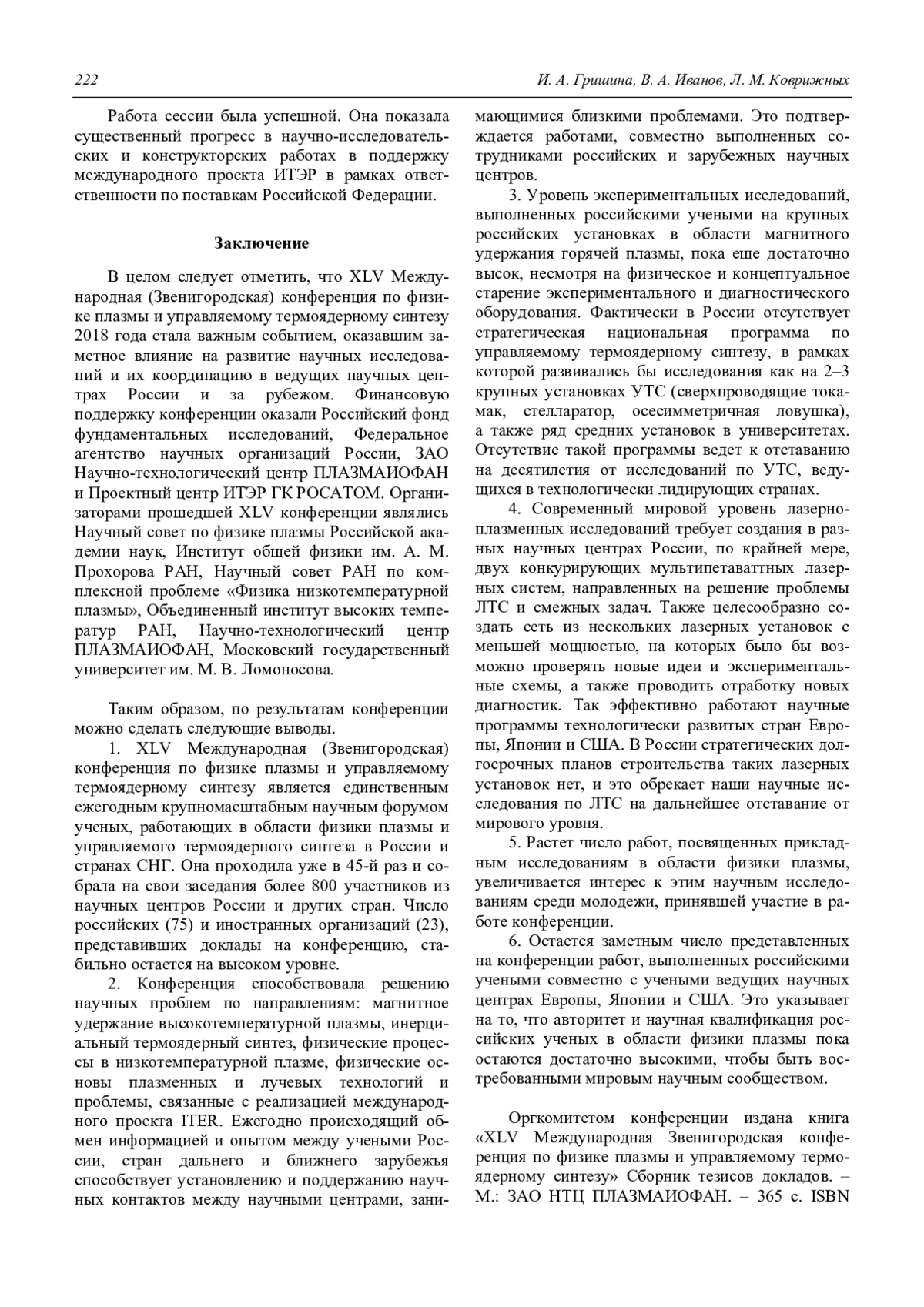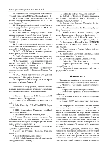 Main research results in the field of plasma physics and controlled fusion in Russia in 2017 (Review of the reports of the XLV International Zvenigorod Conference, 2018) I. A. Grishina, V. A. Ivanov, and L. M. Kovrizhnych 209