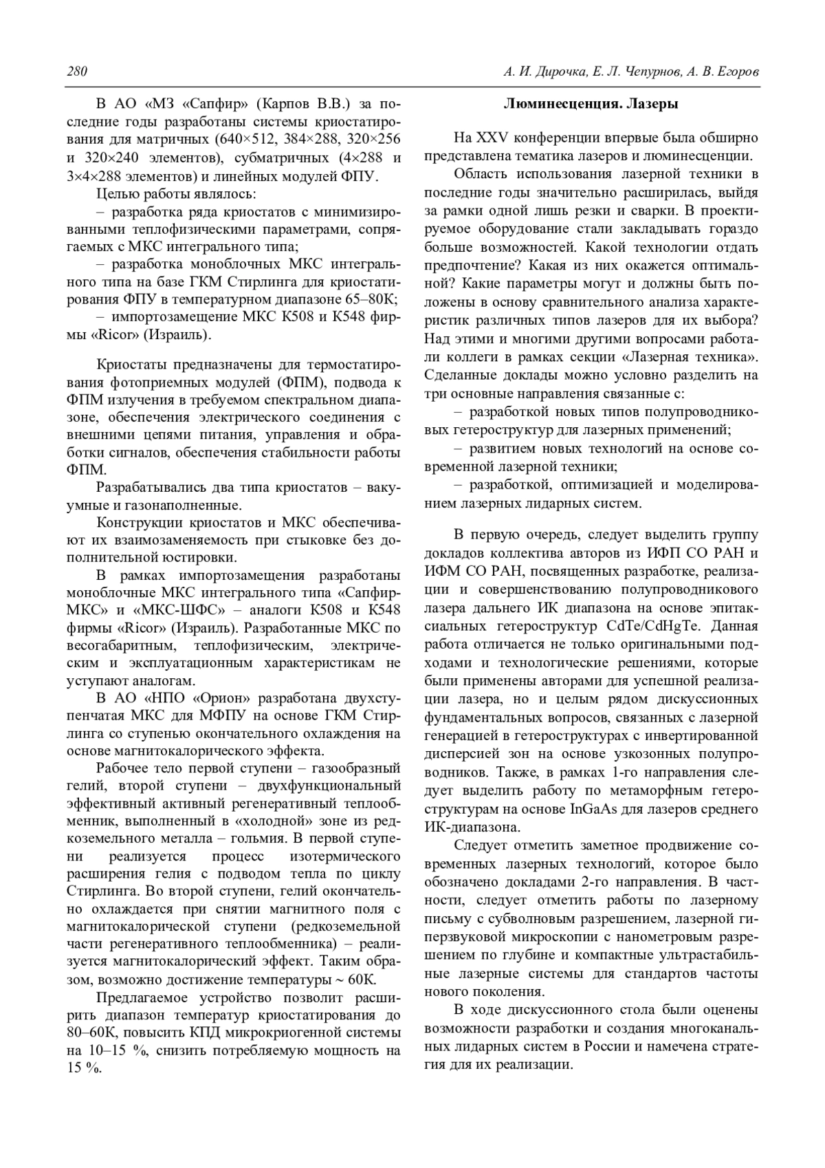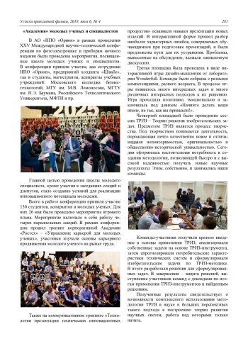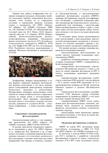 A. I. Dirochka, E. L. Chepurnov, and A. V. Egorov Photoelectronics. Century XXI (Review of the materials of the Jubilee 25th International Scientific and Technical Conference and schools on photoelectronics and night vision devices) 275