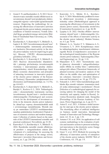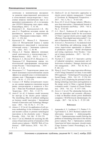 16. Kosov M. E. [et al.] Energy industry: Effectiveness from innovations // International Journal of Energy Economics and Policy. - 2018. - Vol. 8, No. 4. - P. 83-89. EDN: XTNEJF