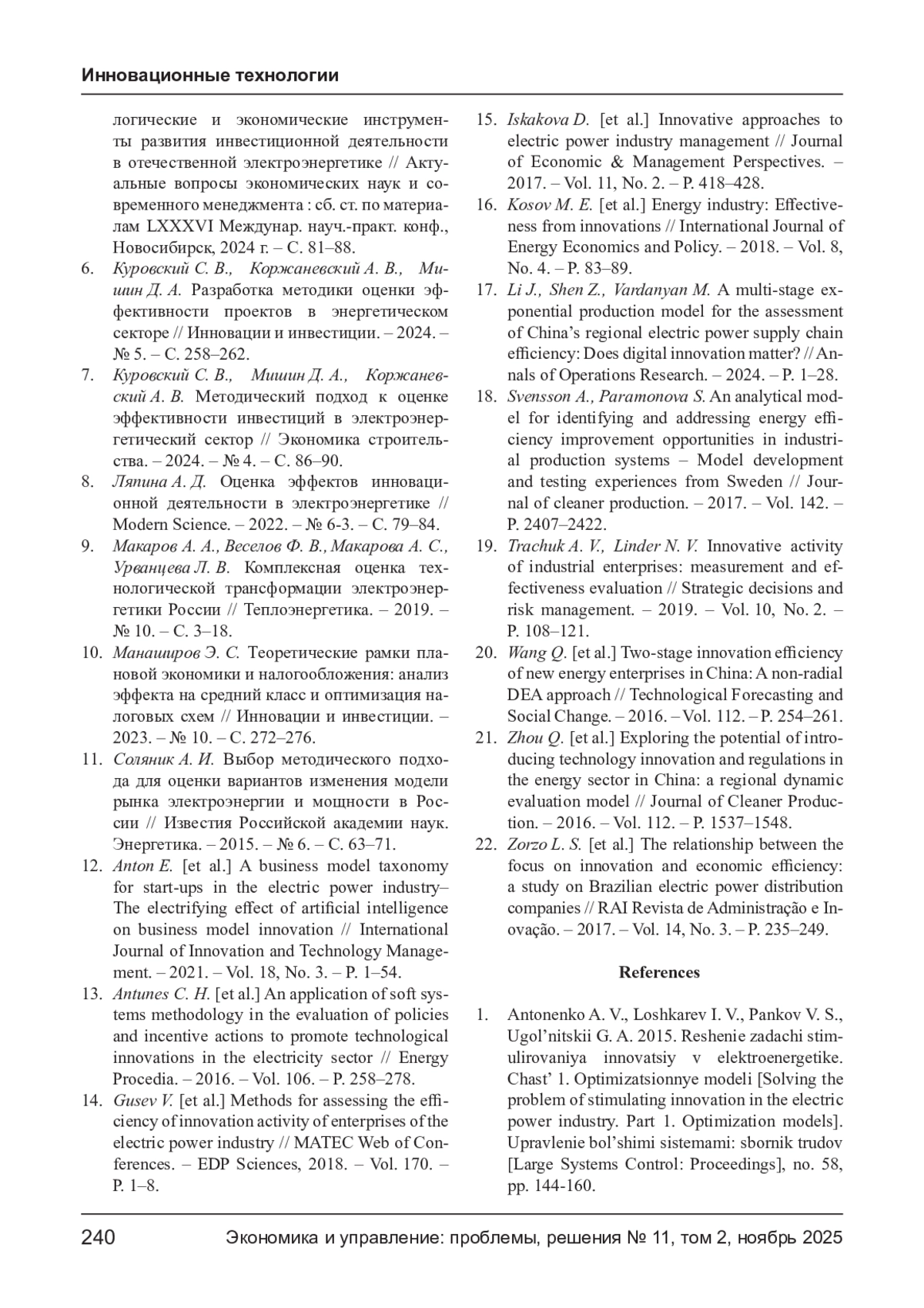22. Zorzo L. S. [et al.] The relationship between the focus on innovation and economic efficiency: a study on Brazilian electric power distribution companies // RAI Revista de Administração e Inovação. - 2017. - Vol. 14, No. 3. - P. 235-249.