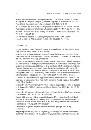 24. Poe M. Moscow, the Third Rome: The Origins and Transformations of a “Pivotal Moment” // Jahrbücher für Geschichte Osteuropas, Neue Folge. 2001. Vol. 49. Part 3. Pp. 412-429.