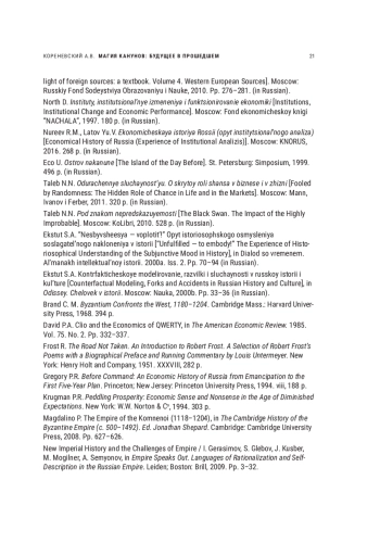 16. Экштут С.А. Контрфактическое моделирование, развилки и случайности в русской истории и культуре // Одиссей. Человек в истории. М.: Наука, 2000b. С. 33-36.