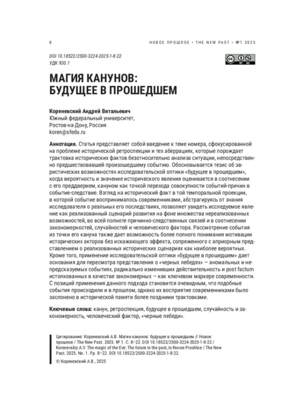 6. Кореневский А.В. Много в поле тропинок… // Новое прошлое / The New Past. 2020. № 3. С. 8-34.