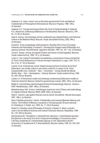 66. Hutton P. Istoriya kak iskusstvo pamyati [History as the Art of Memory]. St. Petersburg: Vladimir Dal’, 2003. 423 p. (in Russian).