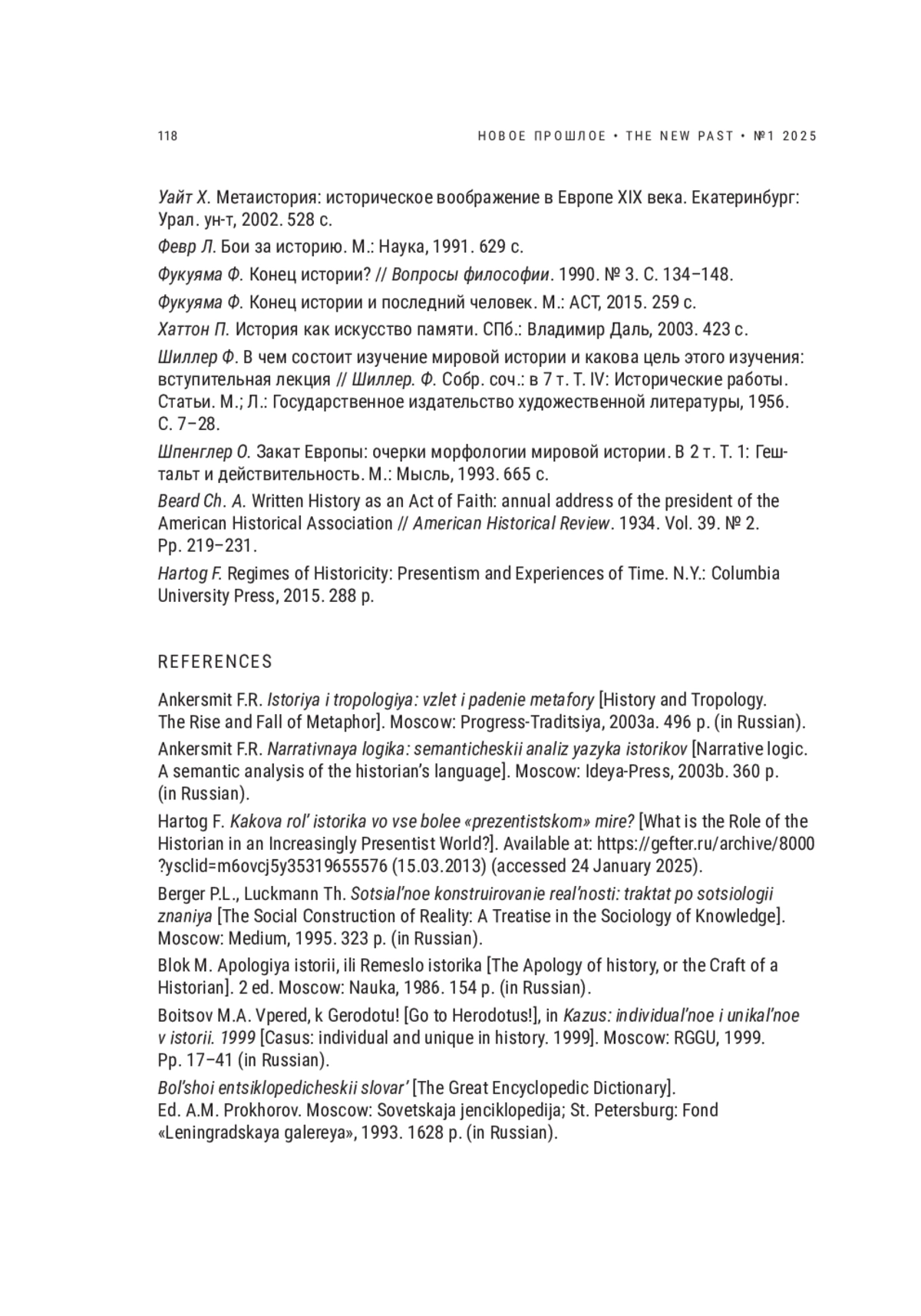 38. Hartog F. Kakova rol’ istorika vo vse bolee “prezentistskom” mire? [What is the Role of the Historian in an Increasingly Presentist World?]. Available at: https://gefter.ru/archive/8000?ysclid=m6ovcj5y35319655576 (15.03.2013) (accessed 24 January 2025).