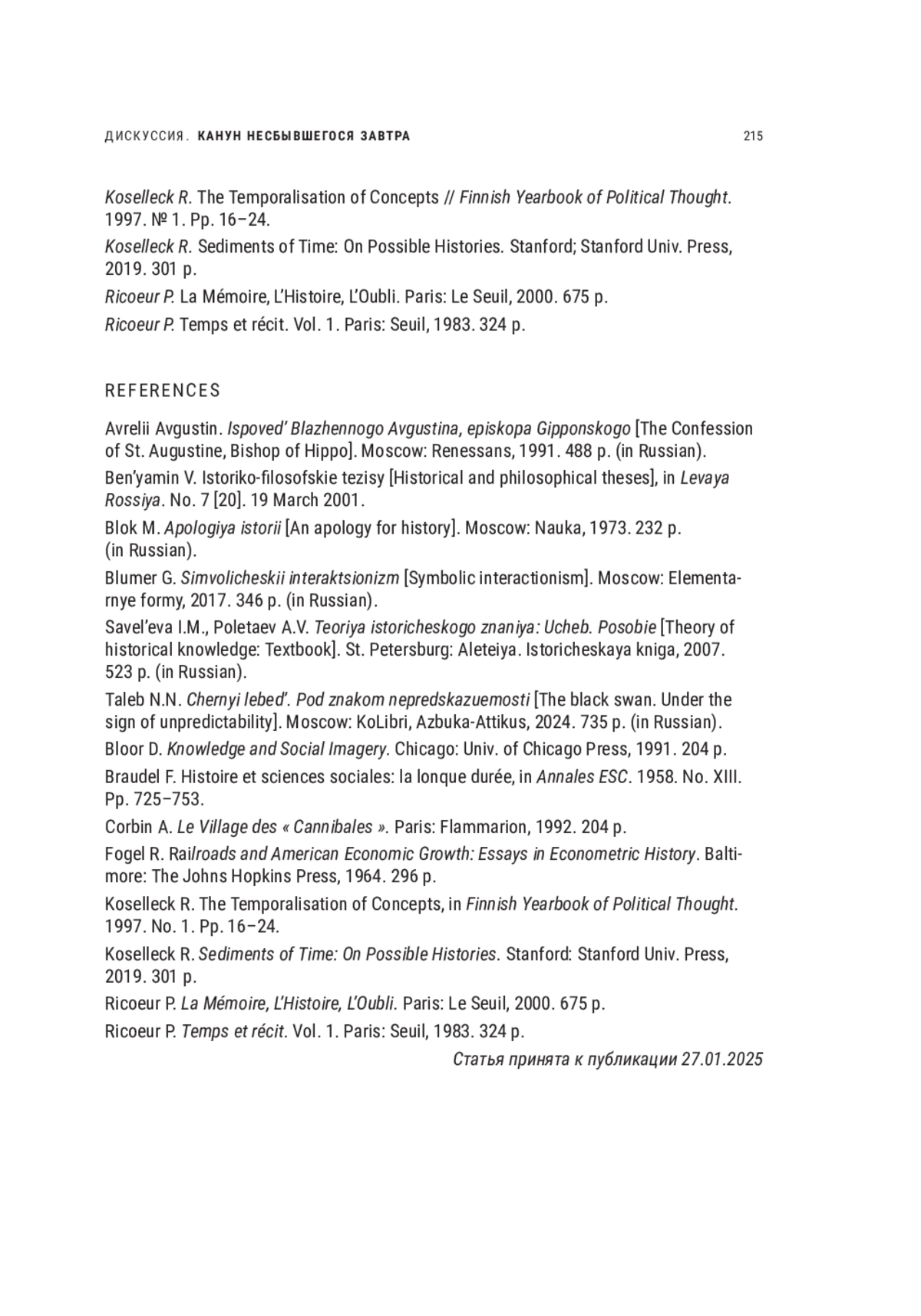 27. Ricoeur P. La Mémoire, L’Histoire, L’Oubli. Paris: Le Seuil, 2000. 675 р.