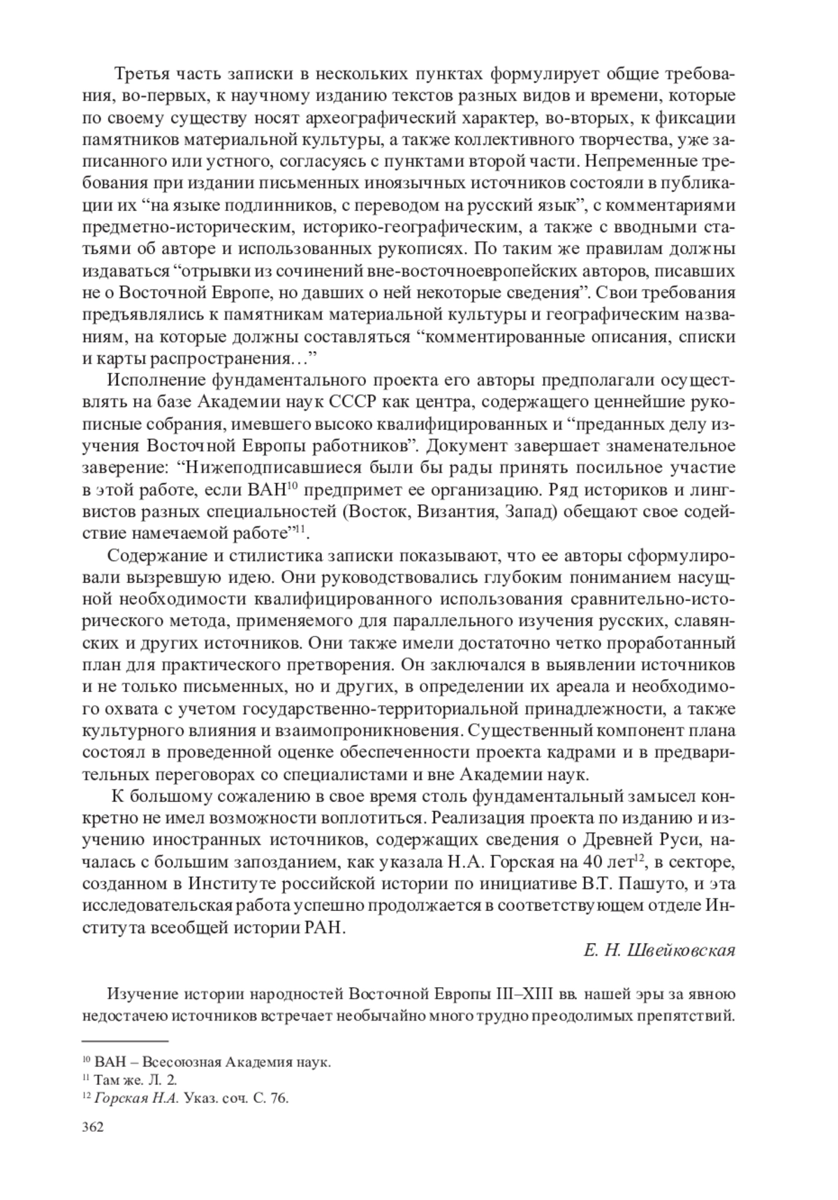 Известно, что в учрежденном в 1969 г. Институте истории СССР АН СССР был образован сектор “Древнейшие государства на территории СССР” (позже ‒ Восточной Европы) под руководством В. Т. Пашуто. Работа нового подразделения была ориентирована на выявление и публикацию зарубежных источников, в которых содержатся сведения о Руси с древности по XIII в. Появление такого отдела в ведущем академическом институте, который специализировался на исследованиях по отечественной истории, воспринималось как крупное нововведение. Со временем деятельность в этой области приобрела стабильность и стала разумеющейся1.