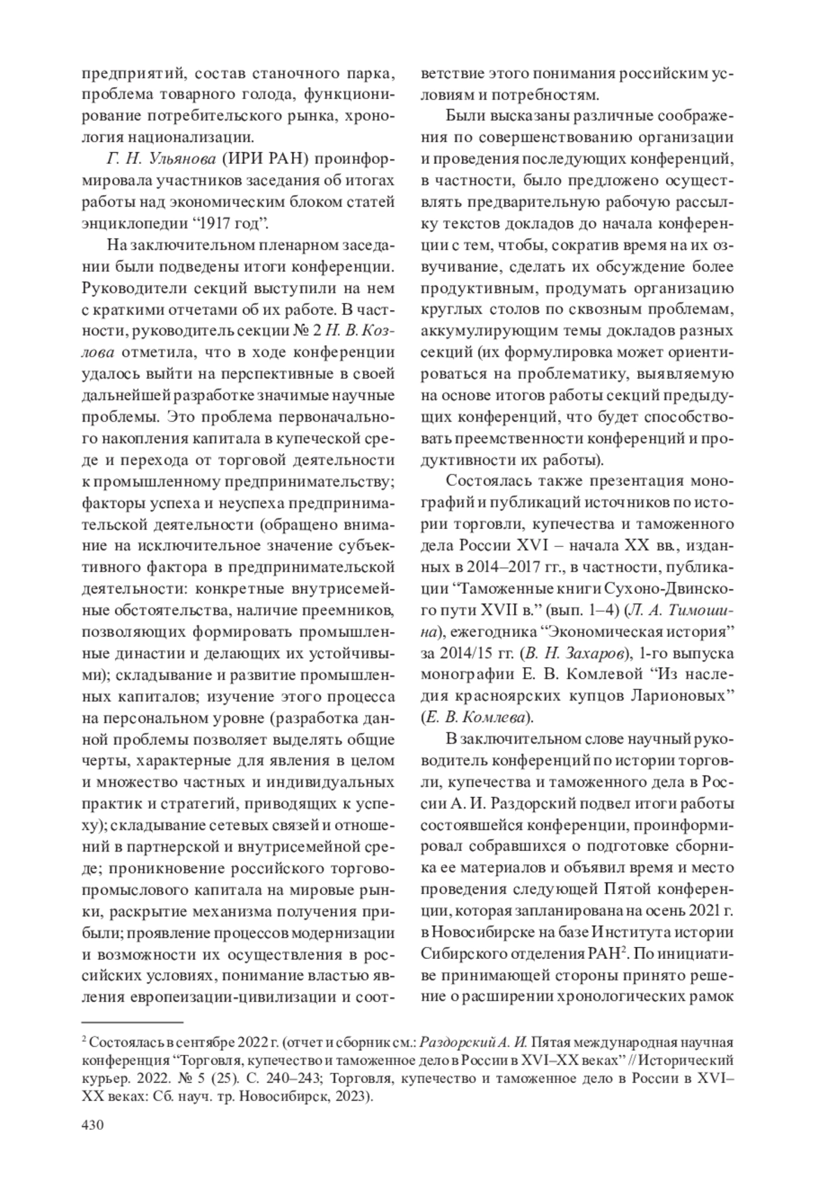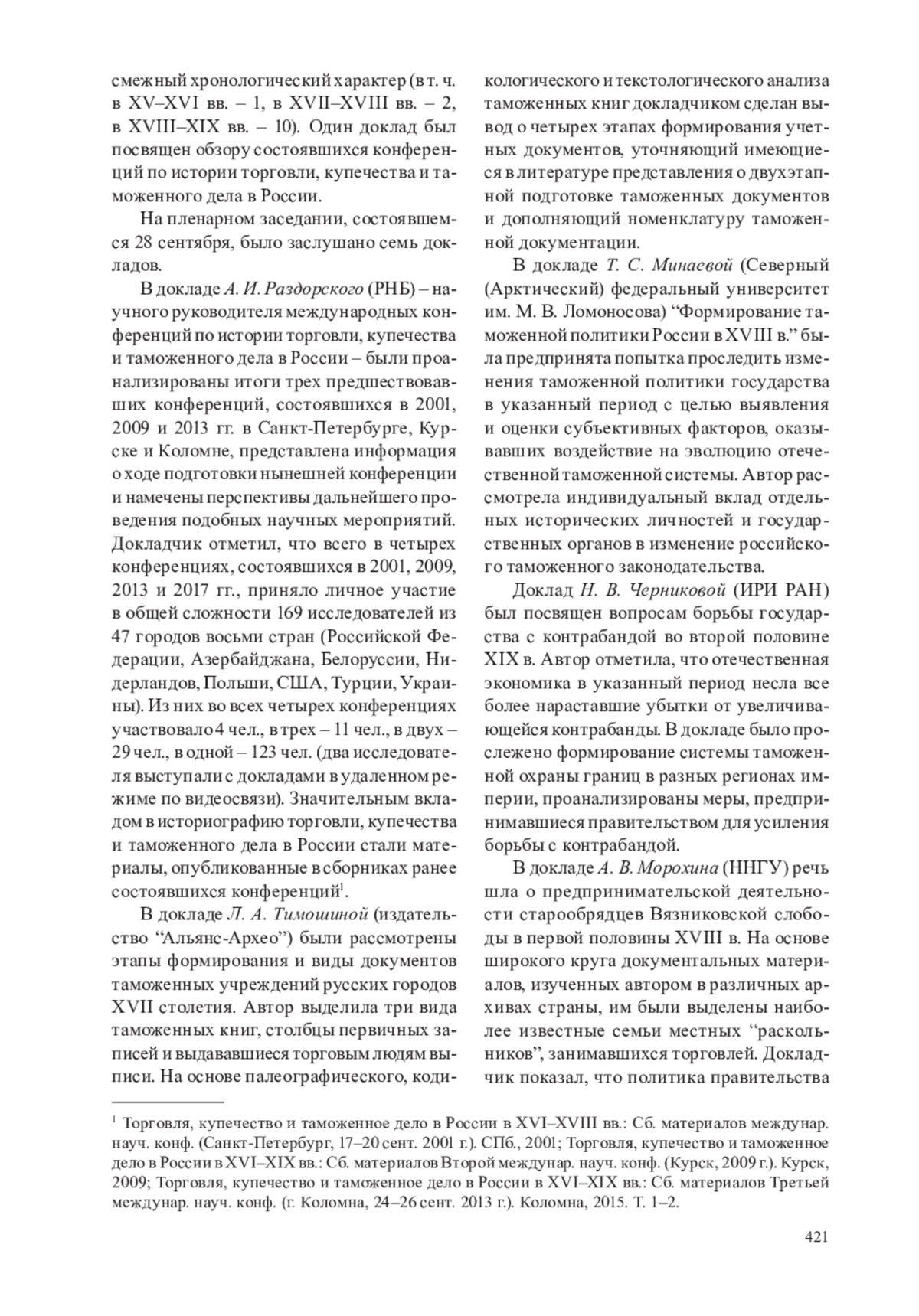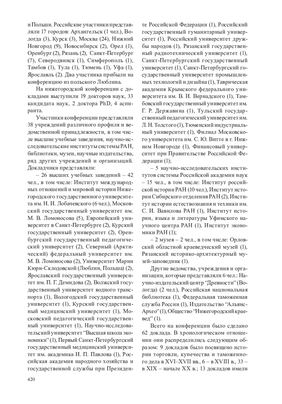 С 28 по 30 сентября 2017 г. в Нижнем Новгороде на базе Института международных отношений и мировой истории Национального исследовательского Нижегородского государственного университета им. Н. И. Лобачевского (ИМОМИ ННГУ) состоялась Четвертая международная научная конференция “Торговля, купечество и таможенное дело в России в XVI–XIX вв.” (председатель оргкомитета – доцент ИМОМИ ННГУ В. Н. Беляева).