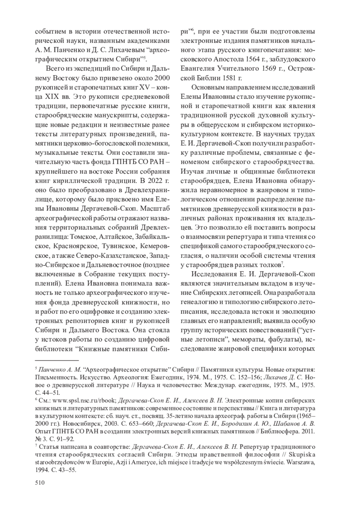 ШИЛОВА И. А., ПОДОПРИГОРА В. В. ЕЛЕНА ИВАНОВНА ДЕРГАЧЕВА-СКОП (1937–2022) // АРХЕОГРАФИЧЕСКИЙ ЕЖЕГОДНИК. 2024. ТОМ 1