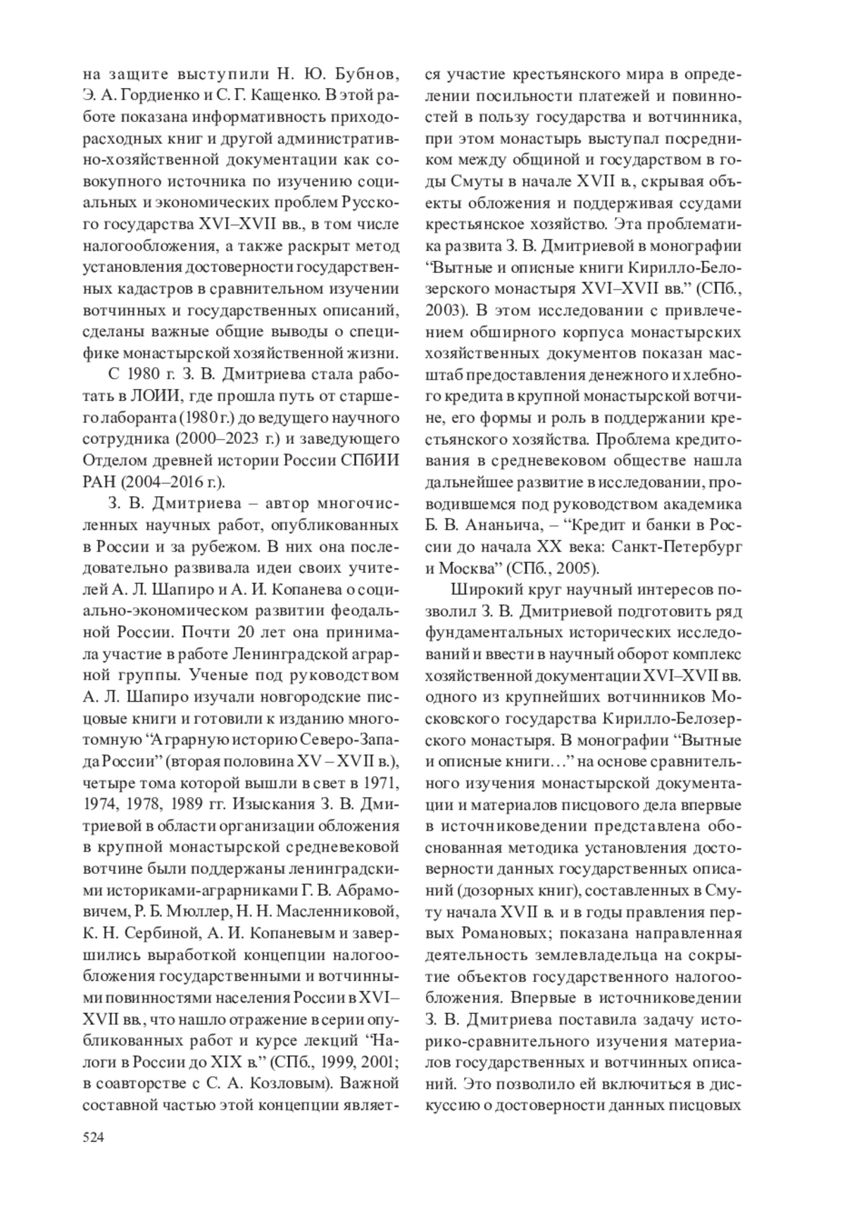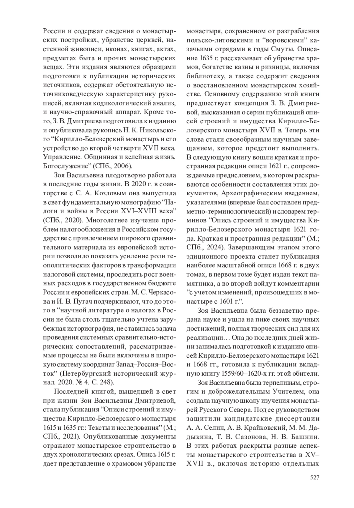 БАШНИН Н. В. ЗОЯ ВАСИЛЬЕВНА ДМИТРИЕВА (1946–2023) // АРХЕОГРАФИЧЕСКИЙ ЕЖЕГОДНИК. 2024. ТОМ 1