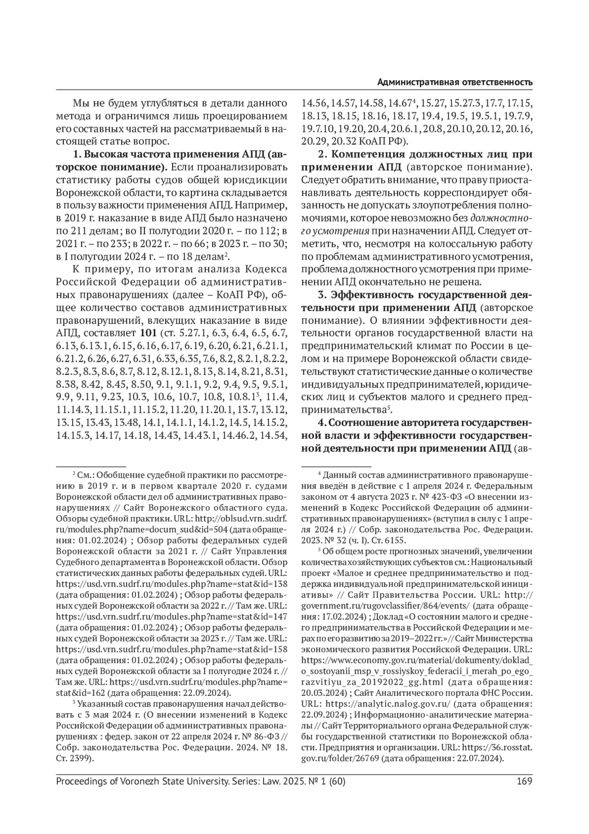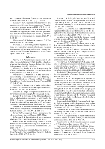 1. Азарова Н. В. Административное приостановление деятельности: вопросы эффективности. // Вестник образовательного консорциума “Среднерусский университет”. Серия: Юриспруденция. 2022. № 19. С. 3-6. EDN: OQGECL
