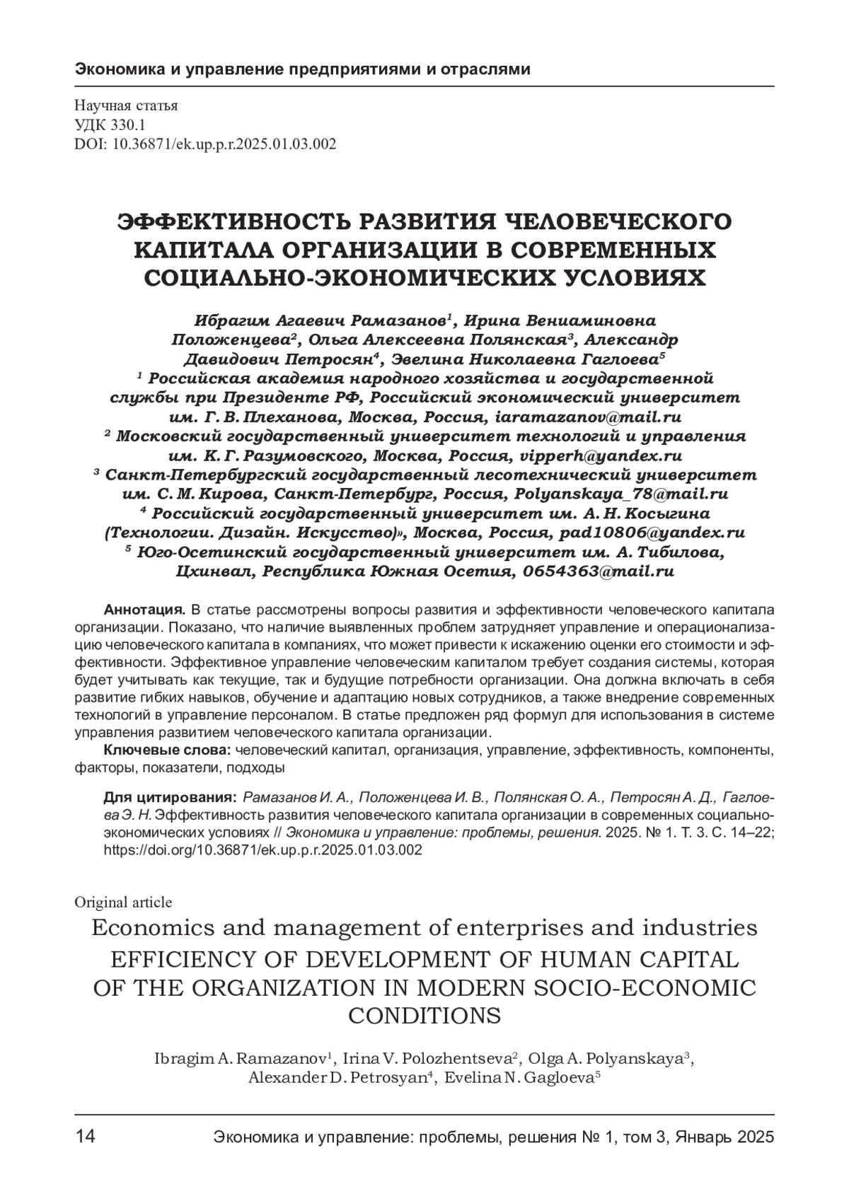 10. Кузнецова, Е.В., Волкова В. В. Методы расчета и оценки человеческого капитала предприятия // Проблемы экономики и экономической безопасности в Российской Федерации в условиях цифровизации, Издательство AUS PUBLISHERS, Мельбурн, 2019. EDN: BECRWC